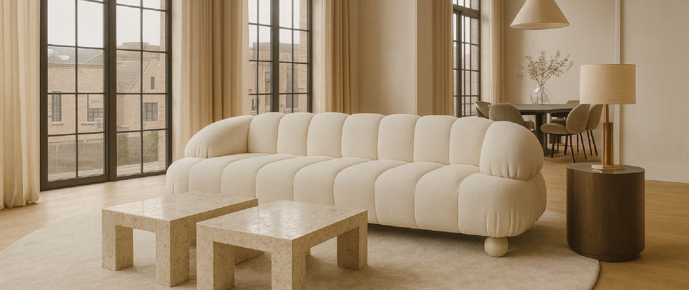 Rich textures, warm tones, and sculptural silhouettes come together to create spaces that feel modern, grounded, and artfully composed.