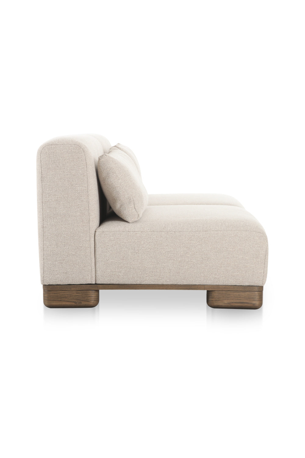 Designed with modular components that expertly function as standalone pieces or as part of modular configurations, the June collection is all about versatility. Wrapped in warm-toned, textured performance fabrics and elevated by oversized oak veneer legs, this piece combines everyday living and understated elegance. Built for ultimate relaxation — the plush feather and fiber fill, along with lumbar toss cushions, offer ultimate comfort.