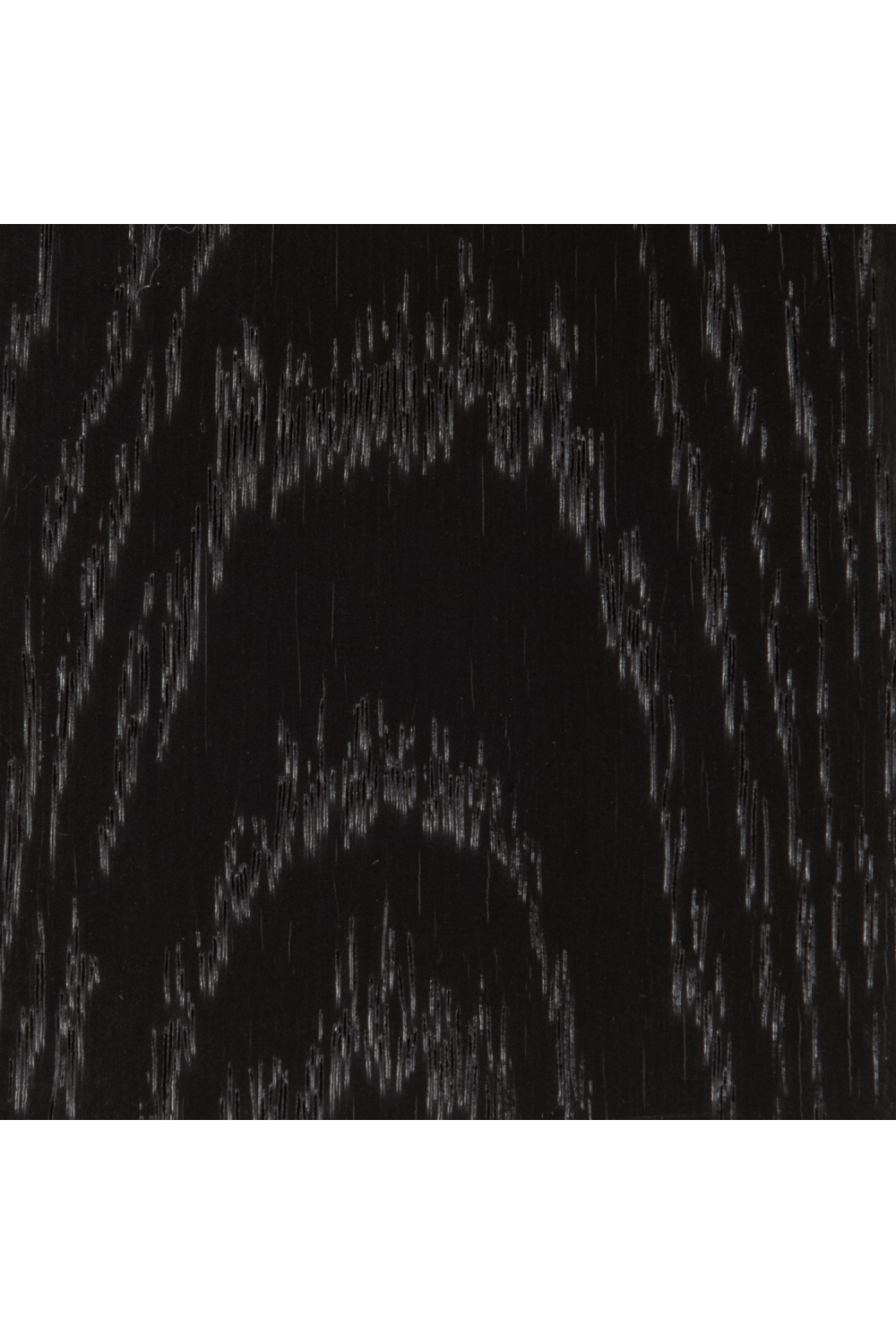 Sleek in its simplicity, this accent chair seamlessly blends modern elegance with tactile luxury. Features a soft suede seat that appears to float within its striking veneer frame. A moody Basalt finish adds dramatic contrast and a layer of opulence.