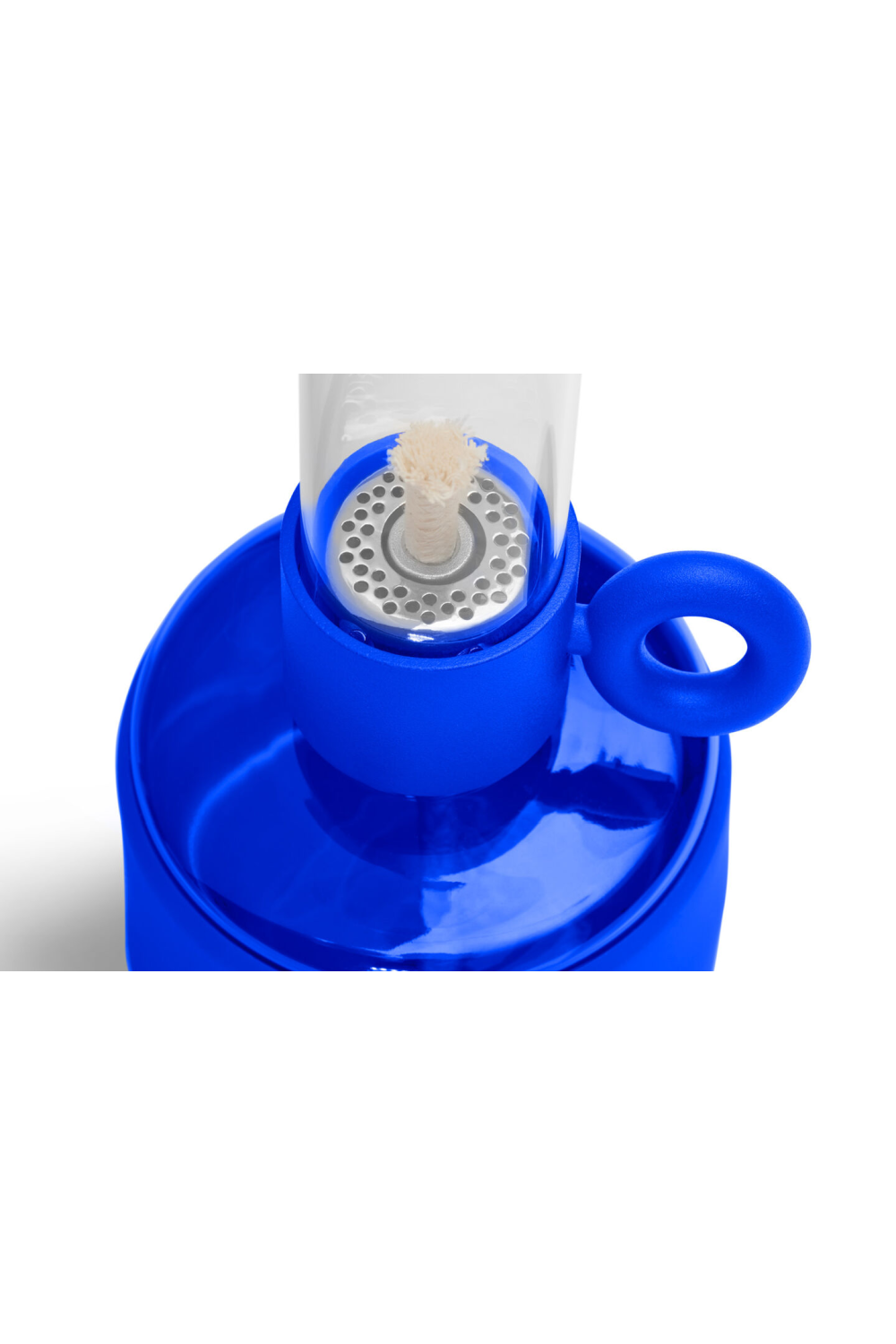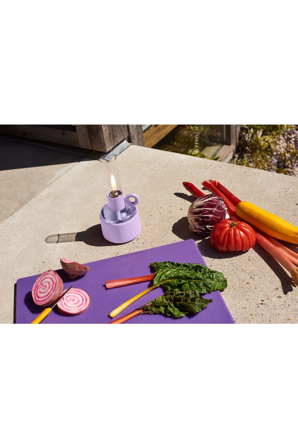 Flamtastique is the oversized lookalike oil lamp for outdoors. His sibling, Flamtastique XS, brings that same campfire ambiance indoors, to your table. We have translated the traditional old oil lamp into a sleek new version. Flamtastique XS is fueled by lamp oil. Thanks to the transparent section of its foot you can always see exactly how much oil is left. And its matte silicone coating makes this glass oil lamp extra strong. To extend a new length of wick, just wind its quirky lug. Endless unforgettable evenings, bring them on.