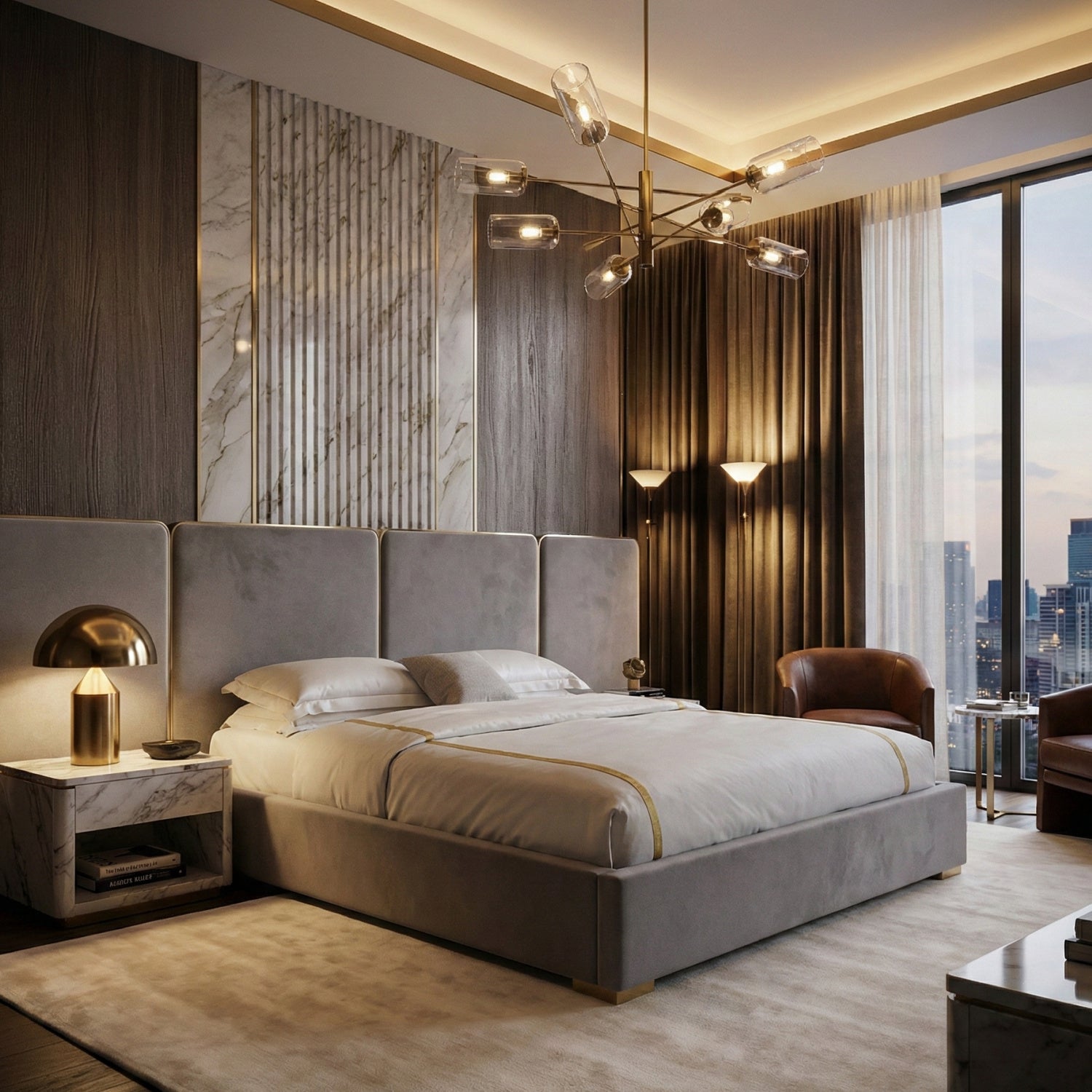 Gray Linen Eastern King Bed | OROA Modern Athena