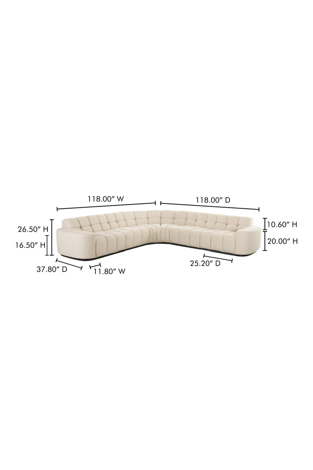 Square-Tufted L-Shaped Sectional Sofa | Novi Living Roman