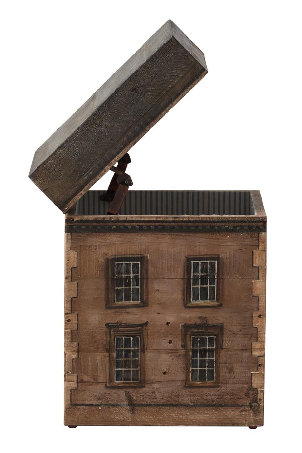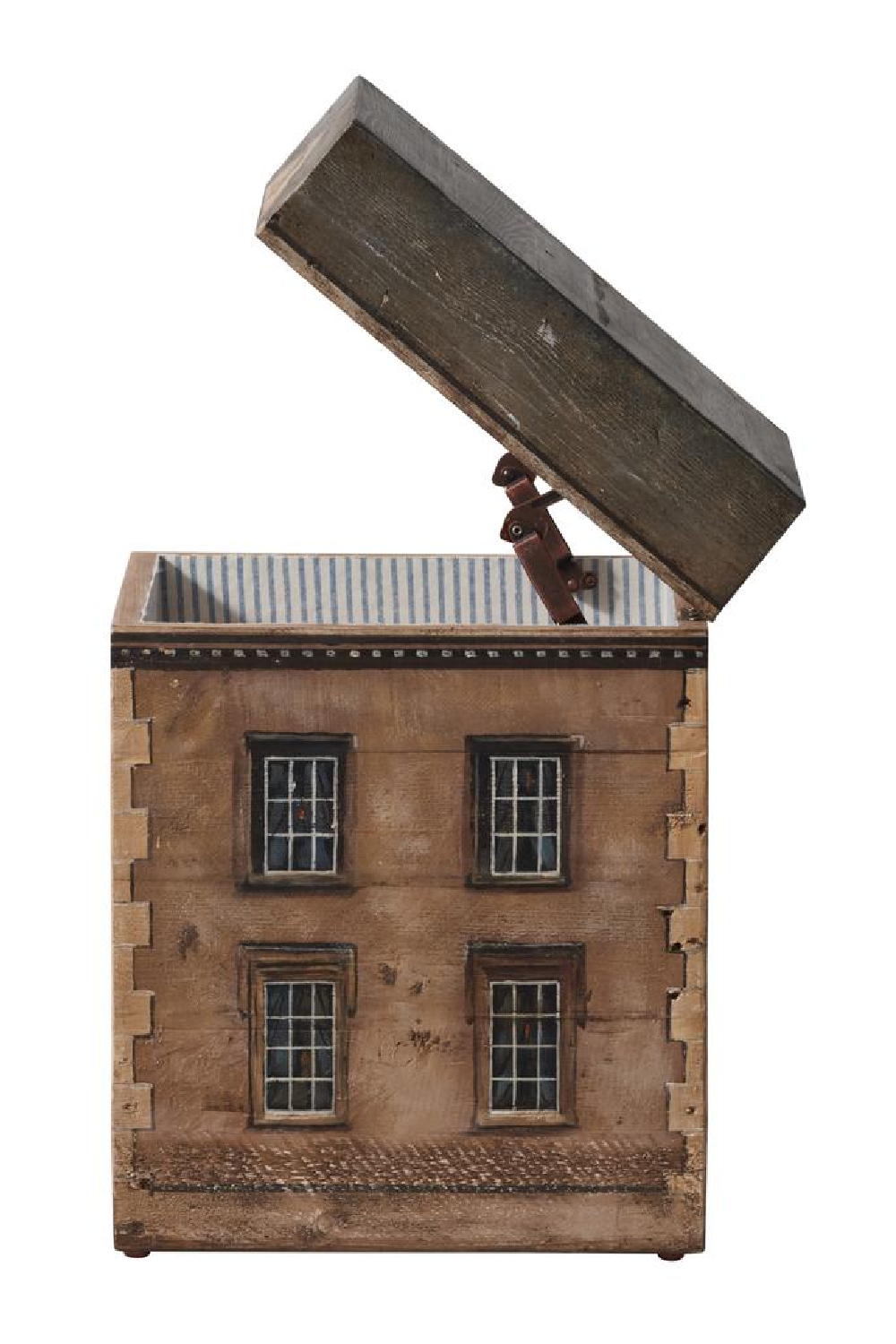 Lift the hinged top to discover a fully lined interior in a neat striped cotton fabric, perfect for storing anything from spare throws to board games. The wood's natural texture and character show through beneath the artwork, grounding this miniature mansion in rustic charm. With dovetail joints and clever craftsmanship, Jacopo is as solid and functional as it is fantastical.