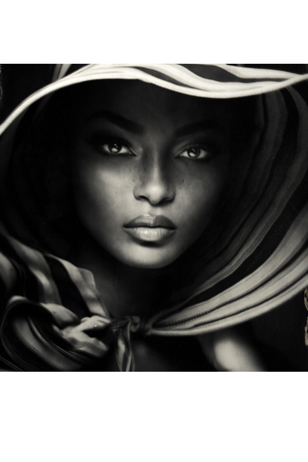Stripes of Faith is a stunning portrait of a woman wearing a fashionable striped sun hat that partly obscures her face. The black and white composition and striking use of shadow creates an enigmatic effect coupled with the woman's entrancing gaze, making it a striking addition to any home. Printed on acrylic plexiglass and set in a lightweight aluminum frame, Stripes of Faith is a limited-edition piece, with only 100 available.