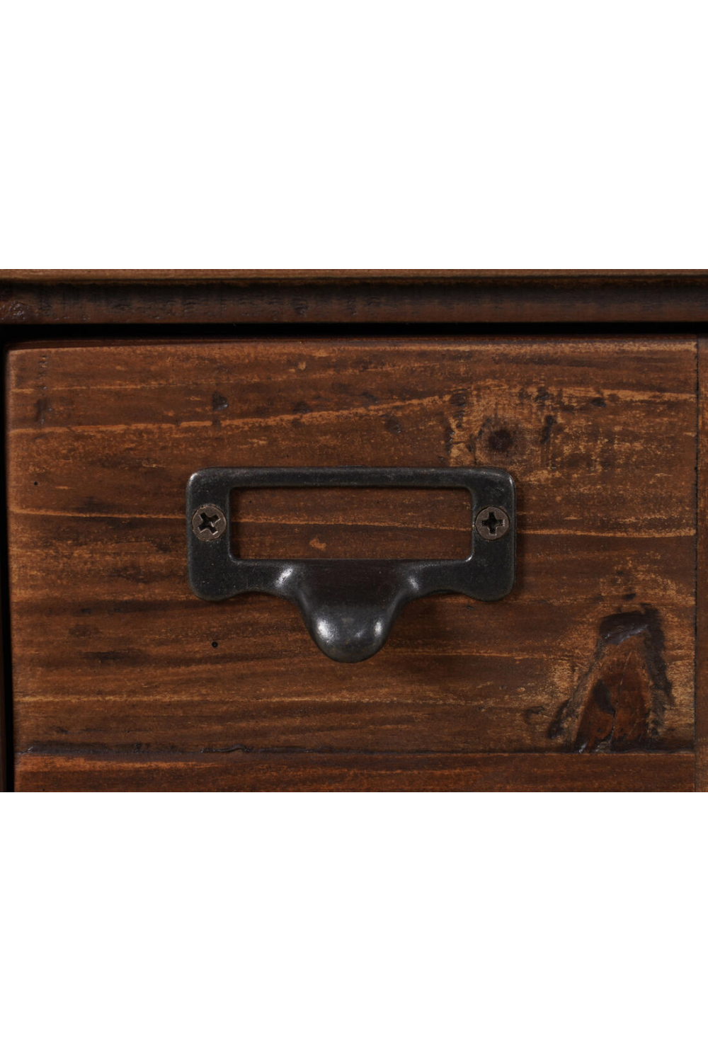 Taking inspiration from vintage banker's drawers, the Lloyd Coffee Table is a captivating centerpiece that enhances your living room with warmth and practicality. Crafted from dark reclaimed wood, the tabletop highlights unique grain patterns and natural imperfections, making each table one of a kind. Complemented by powder-coated iron legs inspired by engineer toolboxes, the table exudes a refined, industrial aesthetic that's both stylish and durable.