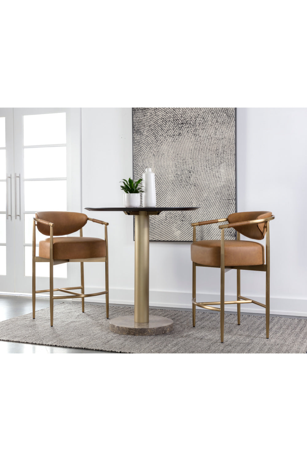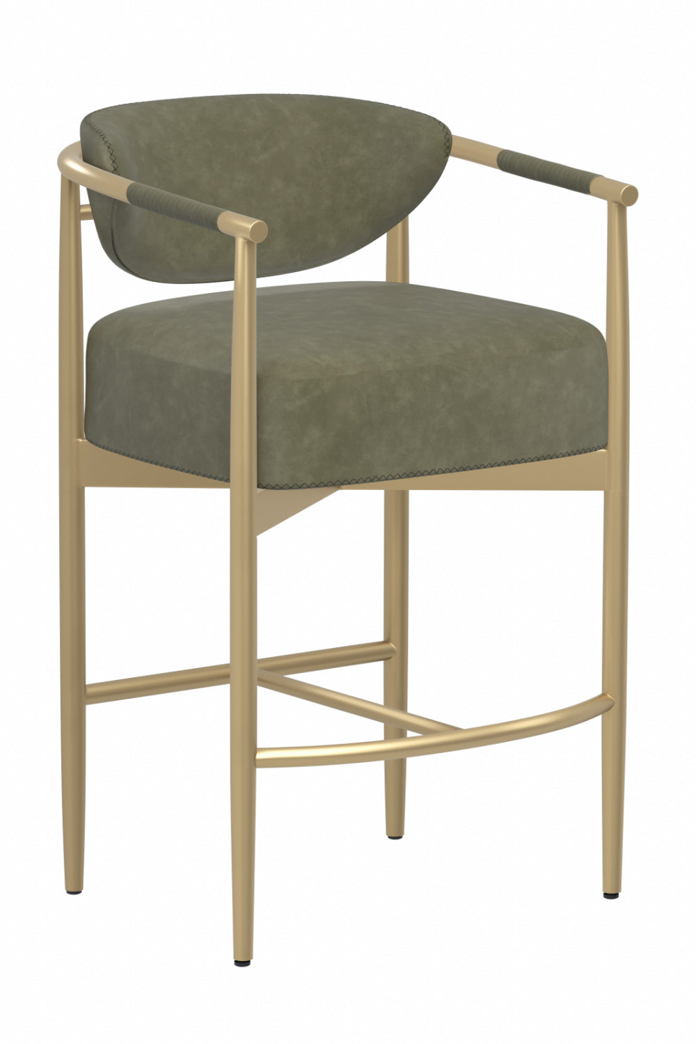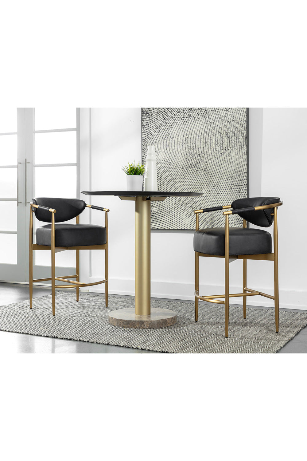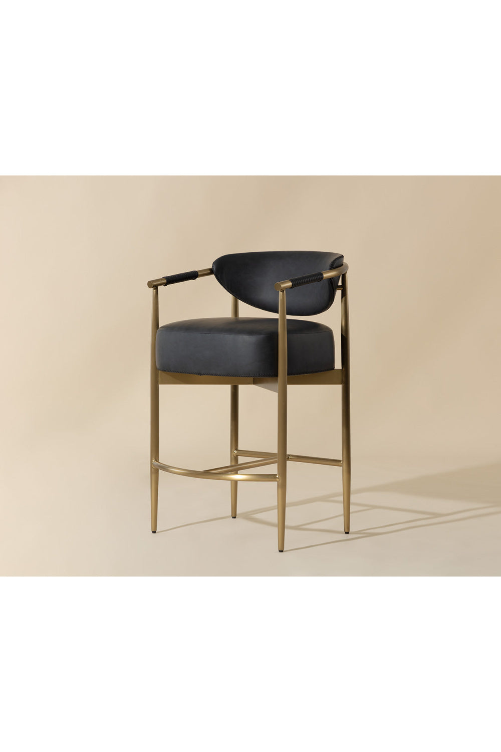 Every detail that makes up the handsome Heloise Counter Stool is designed with purpose. Faux leather upholstery and rope detailing are paired with powder-coated gold stainless steel for optimal style and comfort. Visible stitching on the seat and backrest accentuates the chair's smooth contours. This elegant counter stool will perfectly complement any dining space.