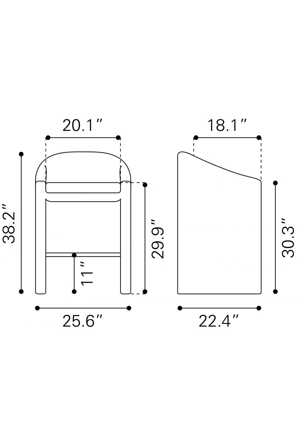 - Seat Dimension: W20 x D18 x H30 in | W51 x D46 x H72 cm