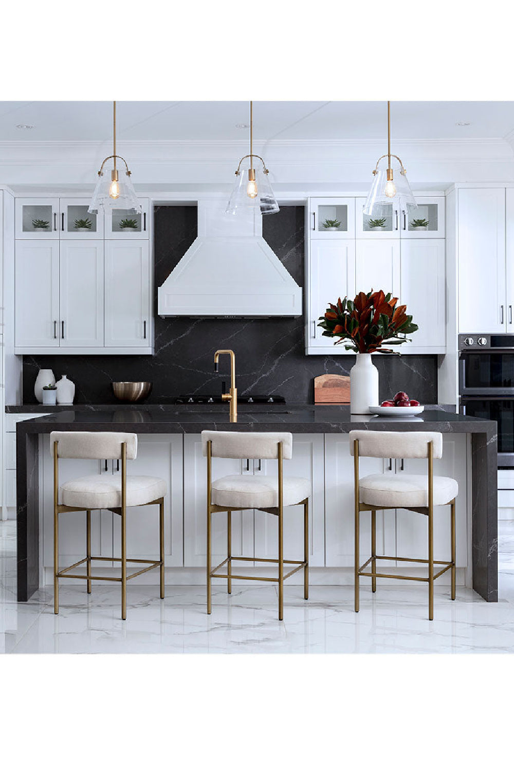 Elevate your kitchen or bar with the Splendido Seneca counter stool, a striking fusion of contemporary design and refined craftsmanship. This low-back seating piece showcases an open back silhouette that creates visual lightness while maintaining comfort. Wrapped in sumptuous fabric upholstery and anchored by an antique brass steel frame, it delivers understated elegance with a touch of vintage warmth. Perfect for modern interiors seeking that coveted balance between style and substance.