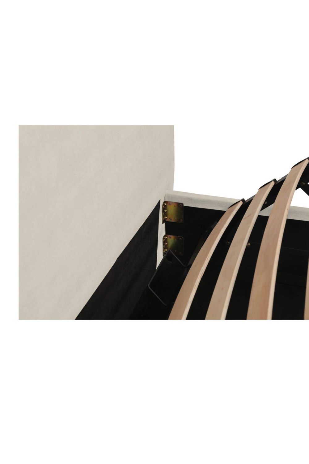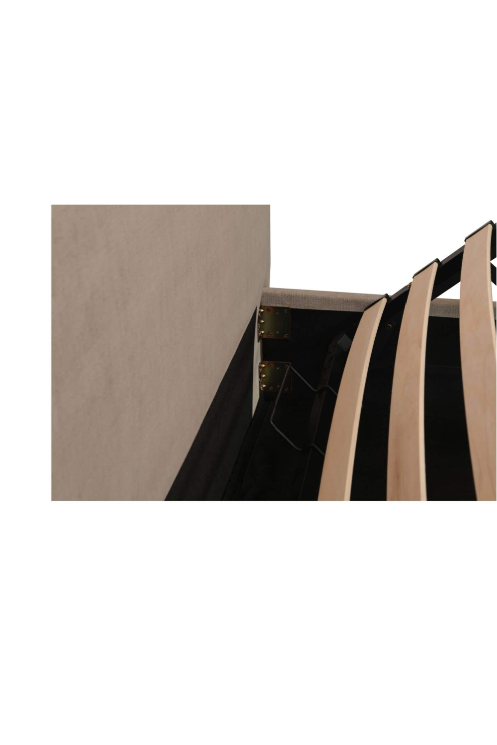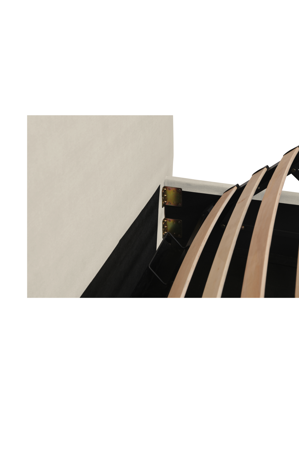 A softer take on tradition. The Maggie Bed reimagines a classic arched headboard with a tapered silhouette and tonal twisted trim for subtle detail. Upholstered in cream polyester, the rounded footboard mirrors the headboard’s softness for balance. Beneath the mattress, a hydraulic lift reveals hidden storage, showing how timeless curves can deliver everyday practicality.
