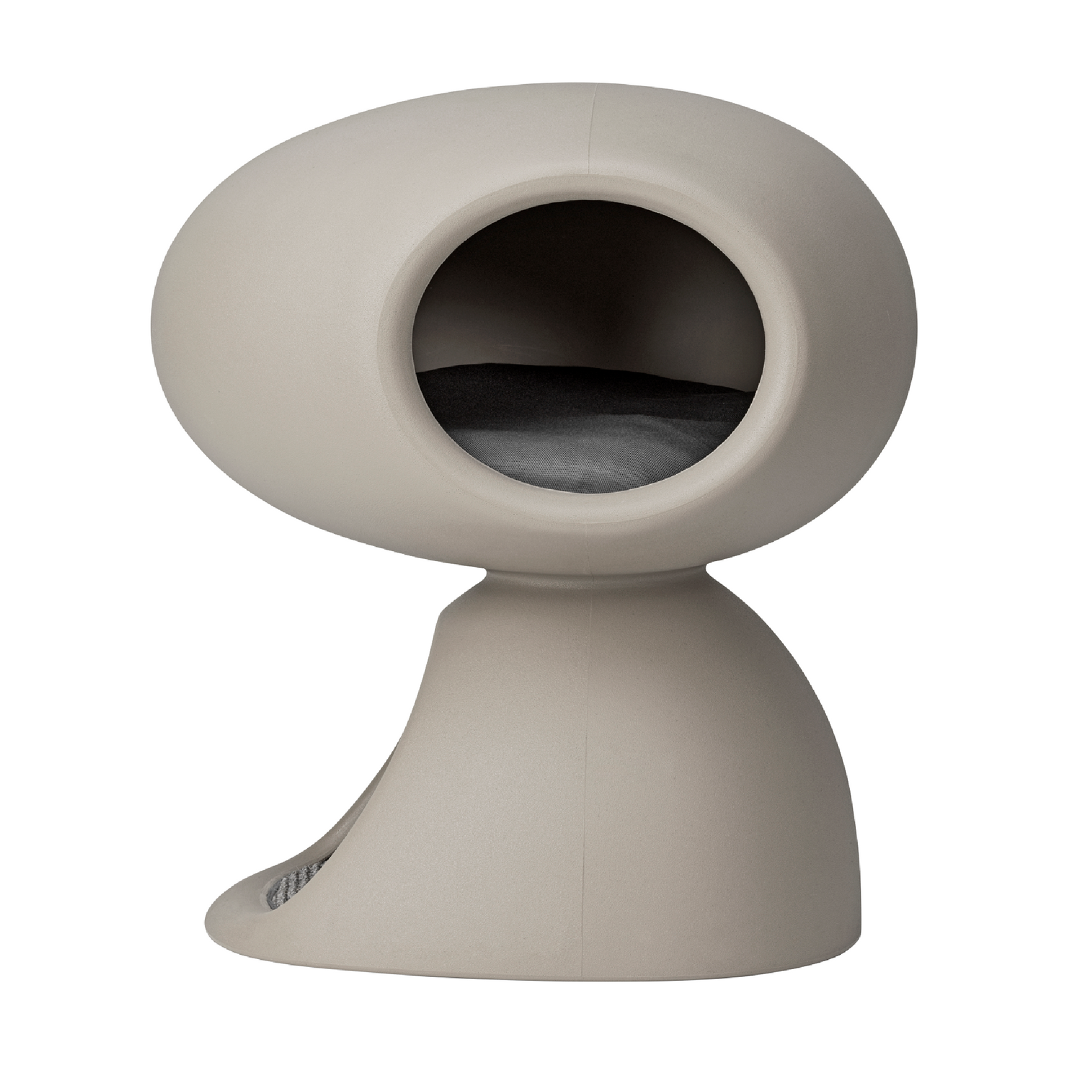The 2-Level Cat Cave by Qeeboo, designed by Stefano Giovannoni in collaboration with United Pets, offers an elegant retreat for cats inspired by natural stone formations. The lower level features a built-in scratching mat and a soft ball suspended for interactive play, while the upper level includes a porthole entrance to provide a secure vantage point for observation and retreat. Available in two refined colors, this sophisticated hideaway seamlessly blends functionality and style for discerning pet owners.