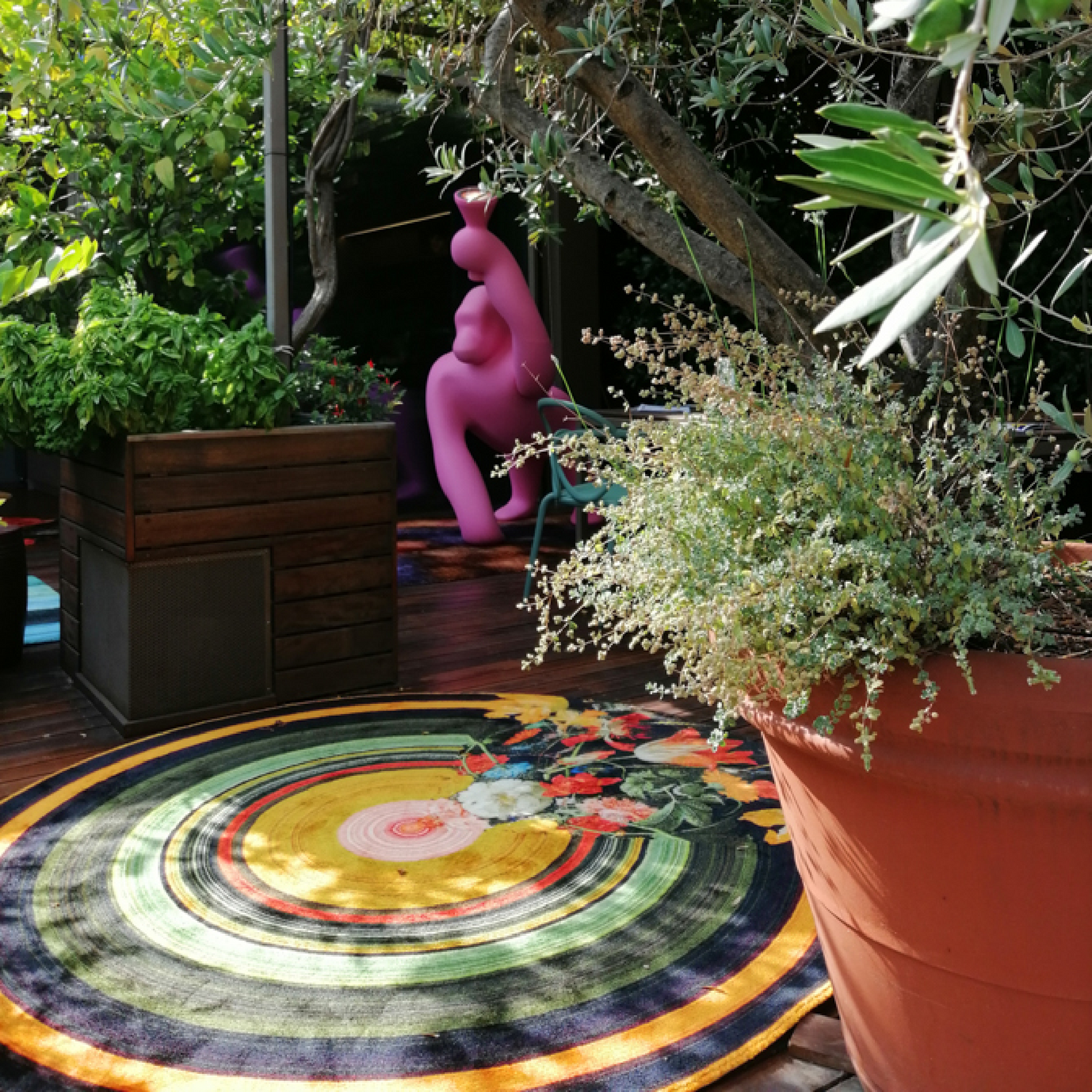 Multicolored Flowers Round Rug | Qeeboo Glitch
