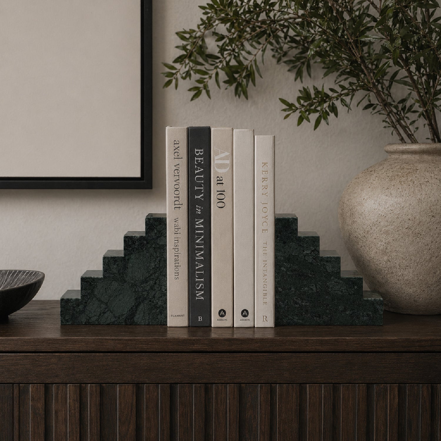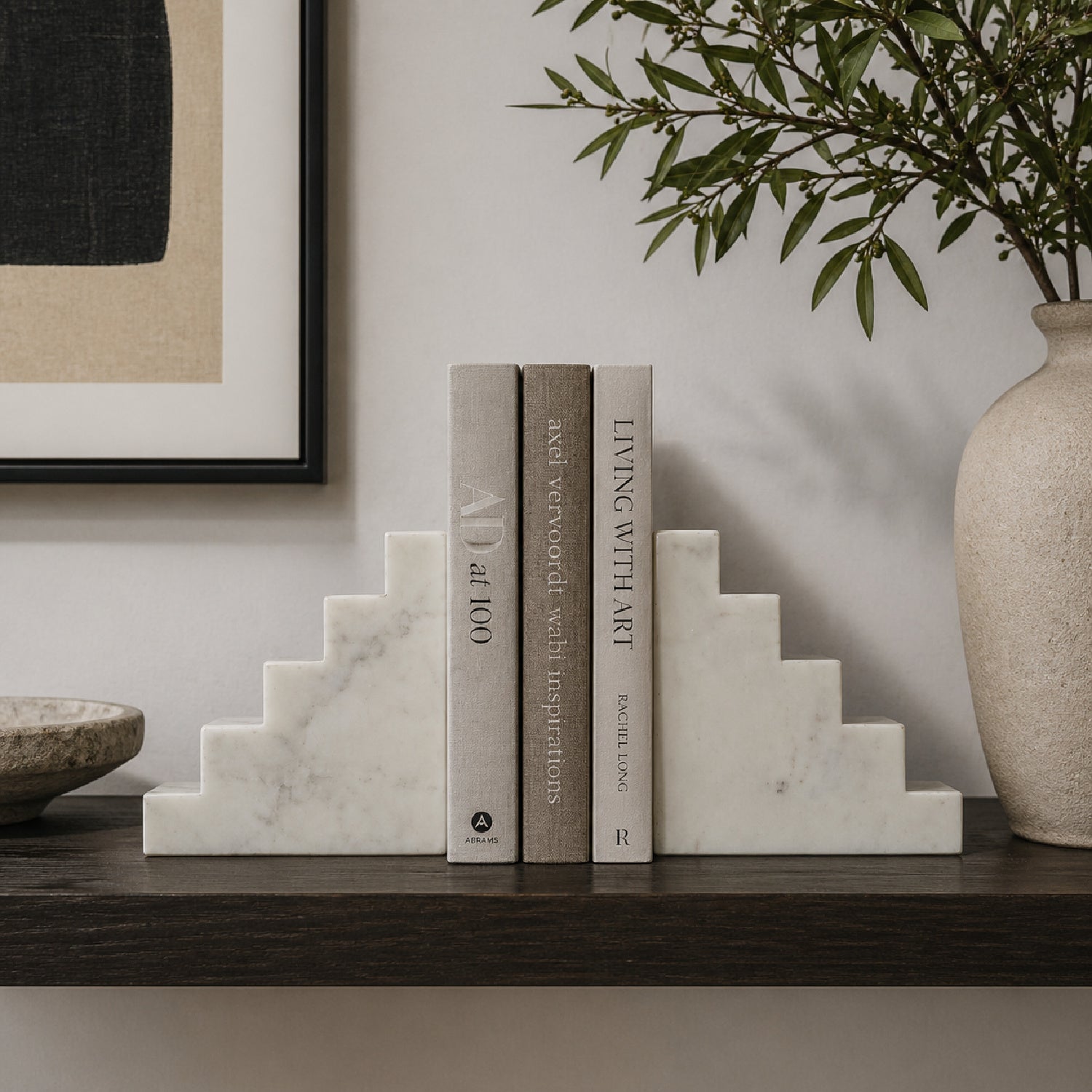 Elevate your bookshelf decor with the Jhalra Bookend Decorative Accent. This minimalist modern design, inspired by contemporary aesthetics, is made entirely of stunning Indian marble. The simple yet bold aesthetic adds an elegant touch to any room, while serving as a practical solution to keep your favorite books neatly organized. Not only is this piece a stylish addition to your home or office, it's also easy to maintain - just a quick wipe with a dry cloth is all you need to keep it looking its best. Please note that harsh cleaners should be avoided to prevent damage to the finish. Indulge in luxury and functionality with the Jhalra Bookend Decorative Accent.