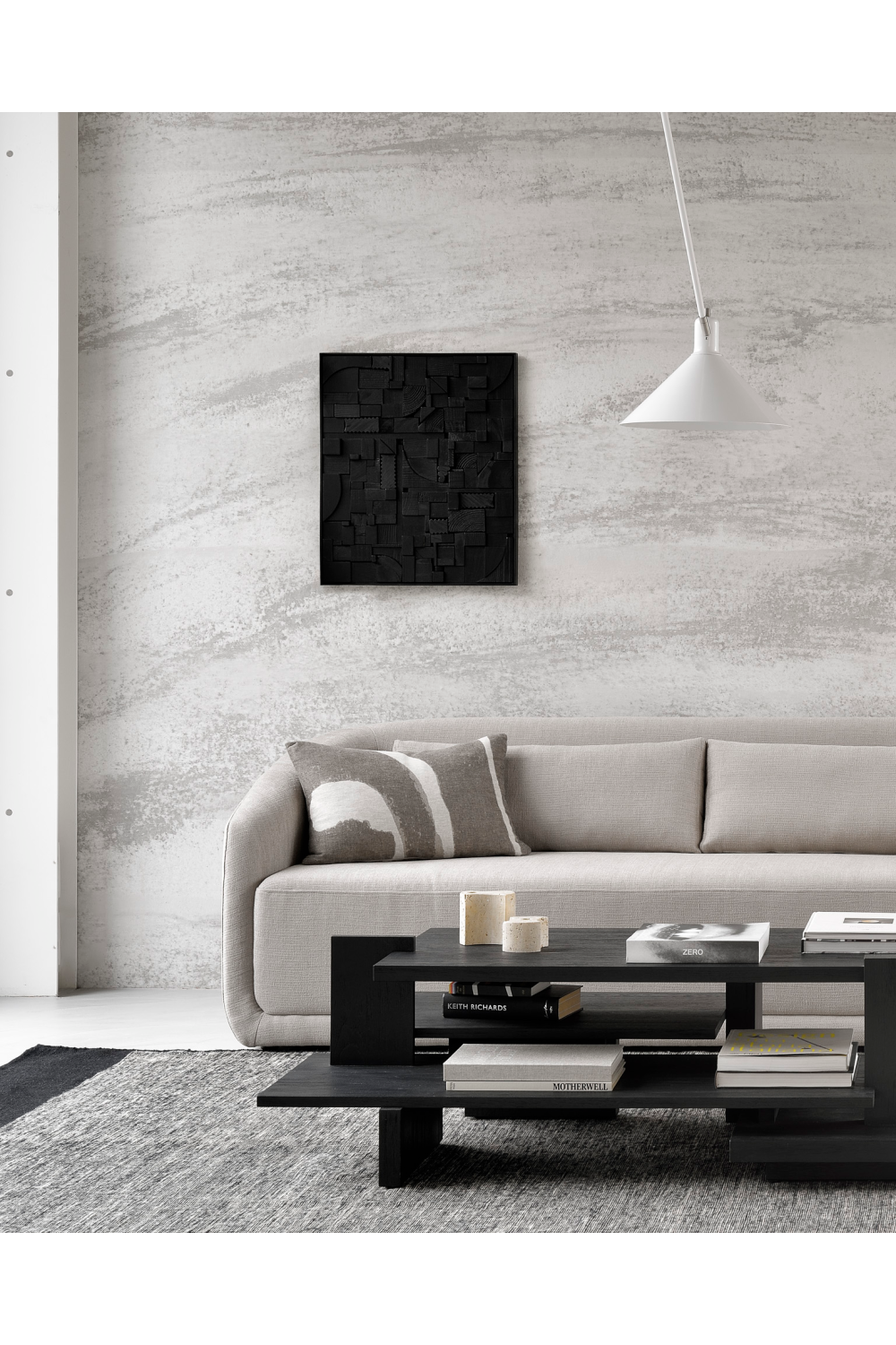 Let the mesmerizing Black Teak Architectural Coffee Table by Ethnicraft take center stage in your living room. Inspired by the influential Dutch architectural movement de Stijl, this Abstract coffee table is an expression of modern aesthetics and functionality. Artfully crafted with black brushed teak wood, it flaunts sculptural presence that is sure to become the focal point of any living or lounge area.