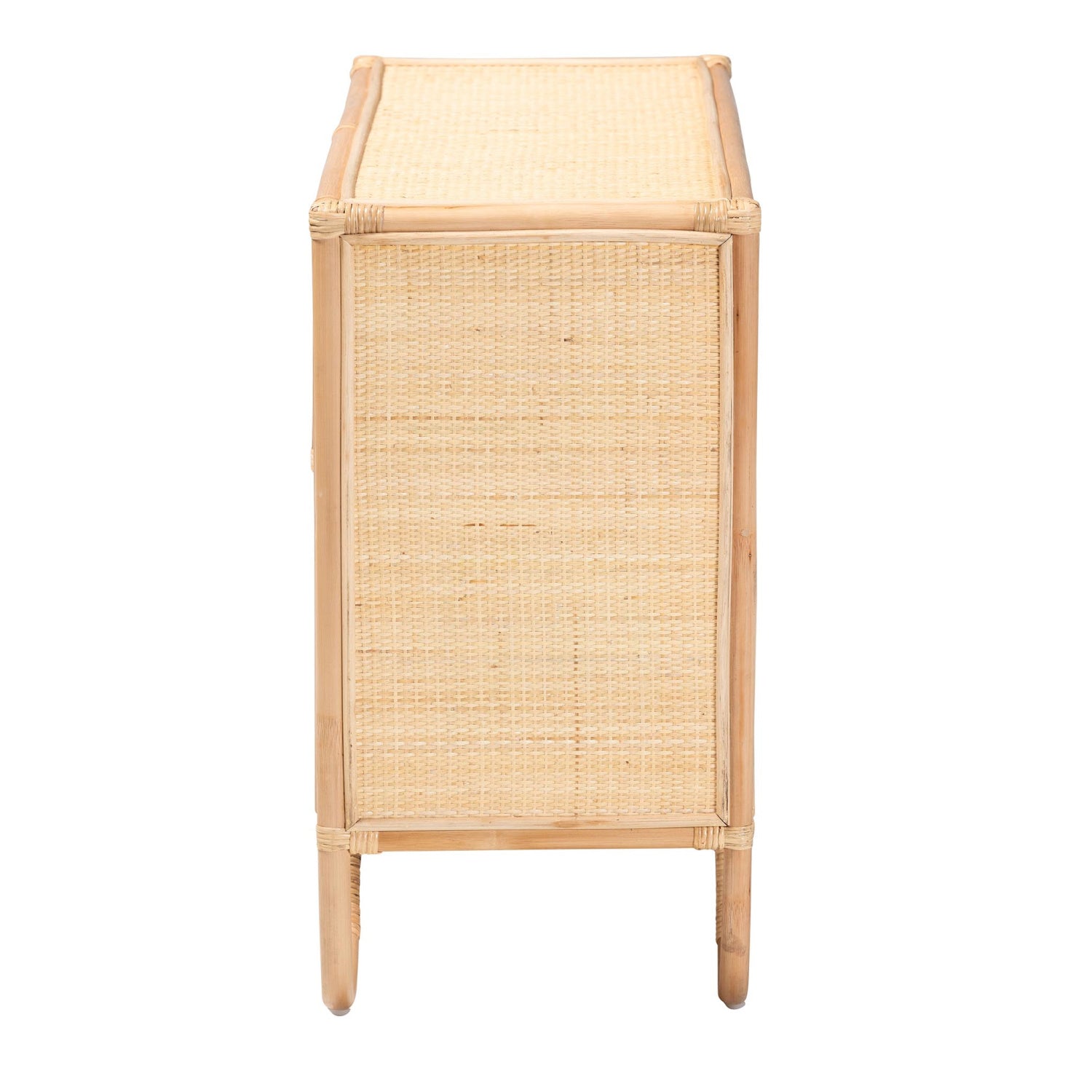 Reinvigorate your space with the rustic flair of the lovely Acelin storage cabinet. This bohemian piece is handcrafted from sustainably sourced natural rattan. The doors are comprised of curled rattan poles for a stunning geometric display that enhances the decorative quality of the piece. The Acelin will arrive fully assembled and feature two interior shelves perfect for organizing and decluttering busy rooms while reserving the tabletop as a fantastic display area. Curved legs create a eye-catching silhouette, making the Acelin storage cabinet an efficient and beautiful addition to any arrangement.