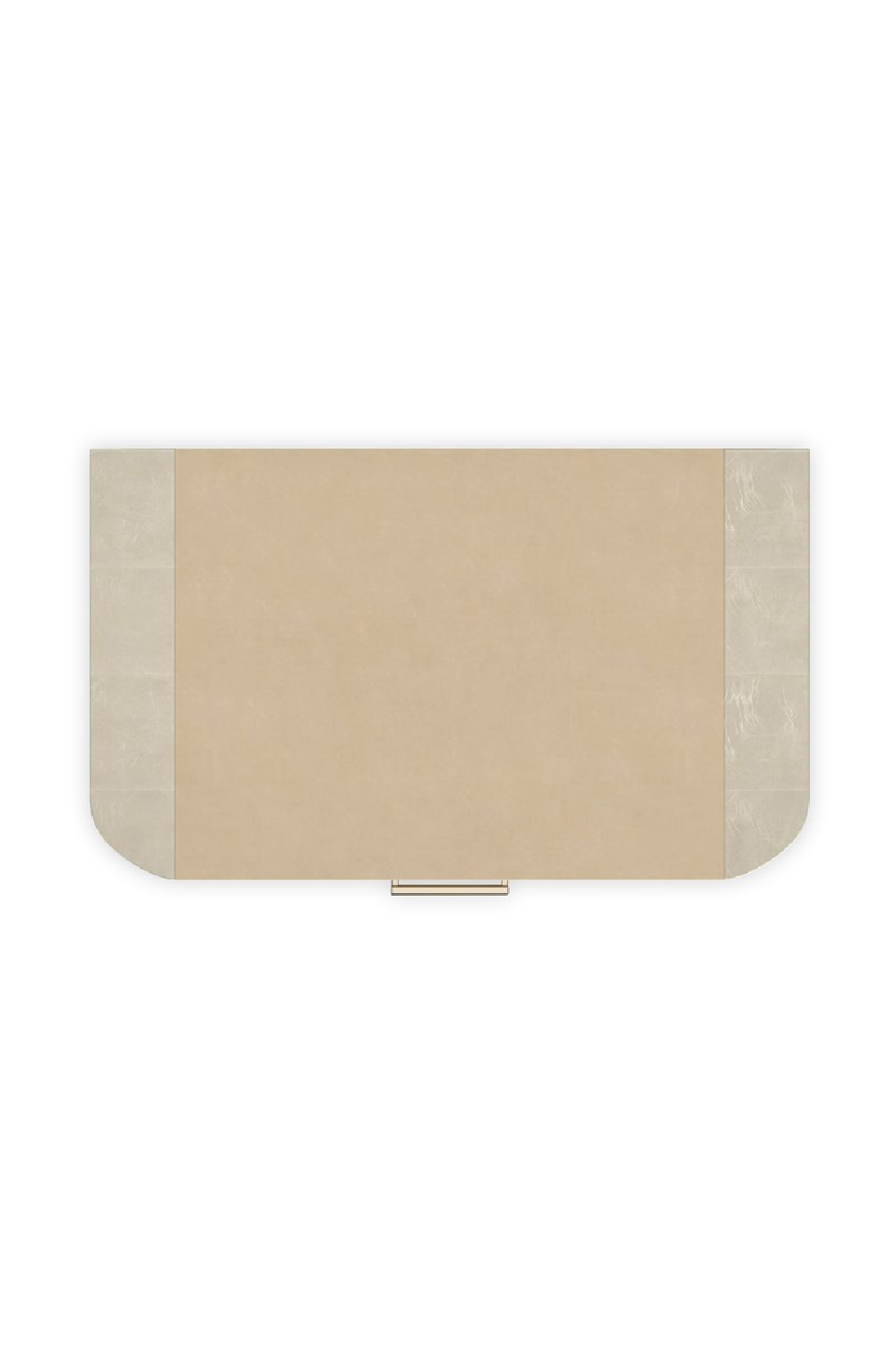 Cap the sides of your favorite bed with elegant nightstands that are just as dreamy. This stunning bedside piece boasts a fashion-forward design with a softly rounded profile, exquisite, fluted sides and vinyl wrapped drawer fronts. Lustrous from every angle, it features a sophisticated palette of finishes. Ring-pull hardware with the look of jewelry in Whisper of Gold adorn both the top and bottom drawers.
