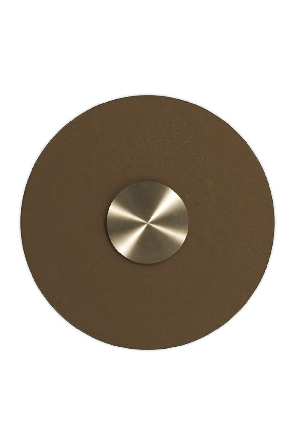 - Smoked Bronze glass top with outer metal frame and center disc in Brushed Gold