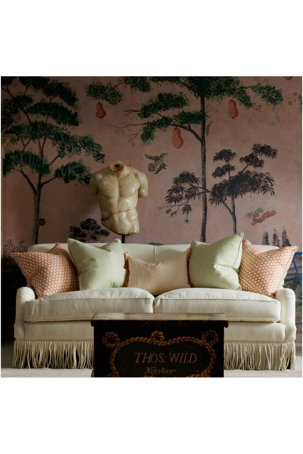 A soft and plump square cushion created from our Pollen fabric in Leaf. The free-flowing design is reminiscent of pollen as it weaves through the air on a warm summer's day. Finished with a smart ticking stripe Picket, it is designed to be styled alongside the other small prints and complementing colors of our Garden Path collection, a homage to the English Garden.