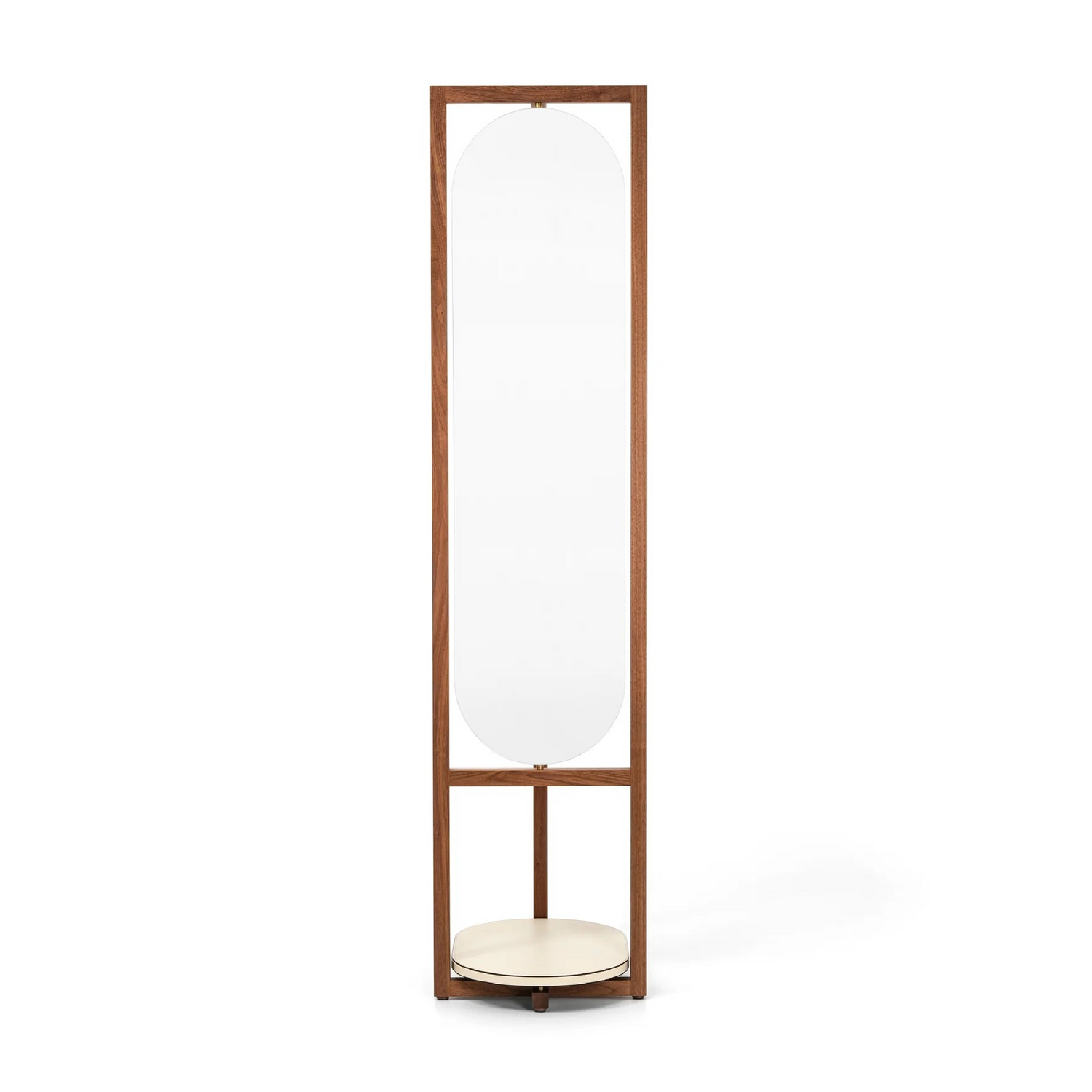 Elena is a sophisticated valet stand designed with elegance and femininity in mind. Crafted from rich walnut wood, it features a taller frame inspired by the Achille style, complemented by a revolving mirror with leather upholstery on the back. A trinket tray offers a refined space for your jewelry, while the leather base provides a distinguished spot for your heels. Perfect for preparing your elegant evening attire, Elena adds a touch of grace to your dressing routine.