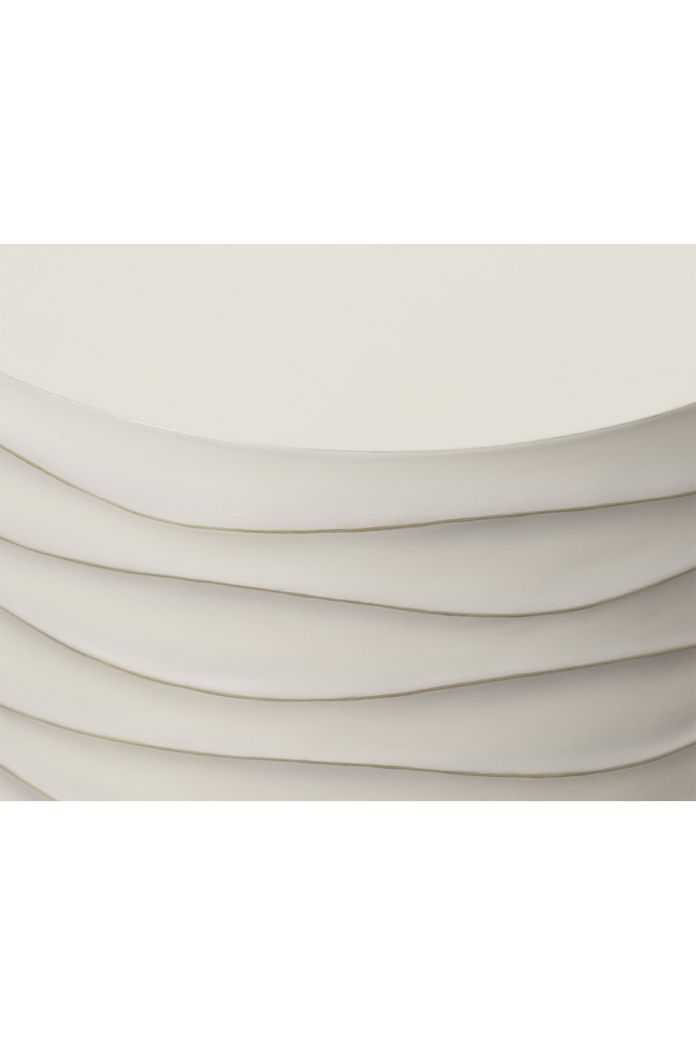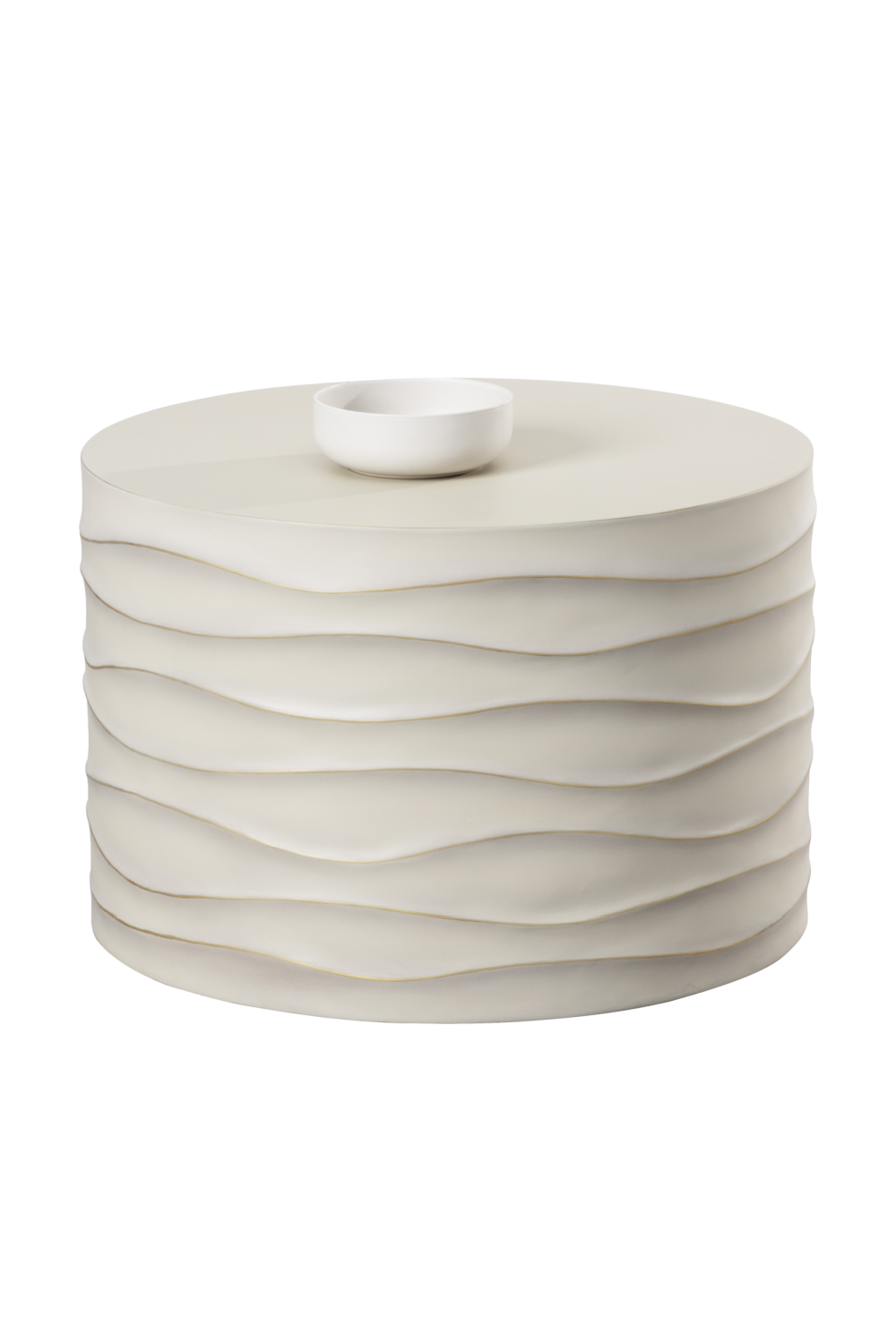 This round coffee table will bring a minimal aesthetic to any environment. Crafted from concrete, this piece features hand sculpted ridges with a painted brass finish. The perfect addition to living, lounge and office spaces.