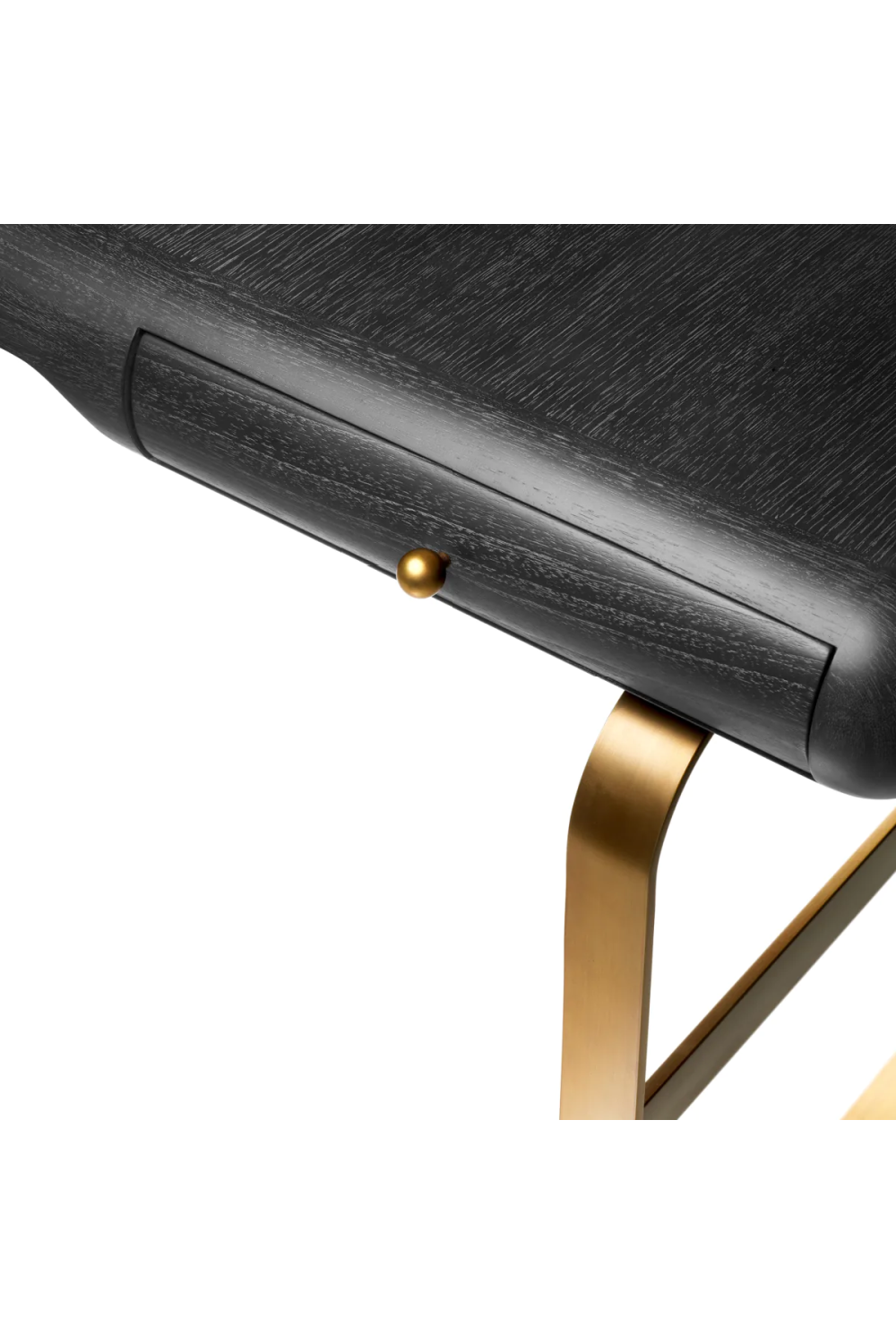 Elevate your workspace with the Desk Nathaniel, featuring a striking charcoal grey oak veneer and sleek brushed brass finish. Its gracefully rounded silhouette and dual drawers blend sophistication with utility, making it an ideal choice for those who appreciate luxury design. This piece resonates with timeless elegance and contemporary allure.