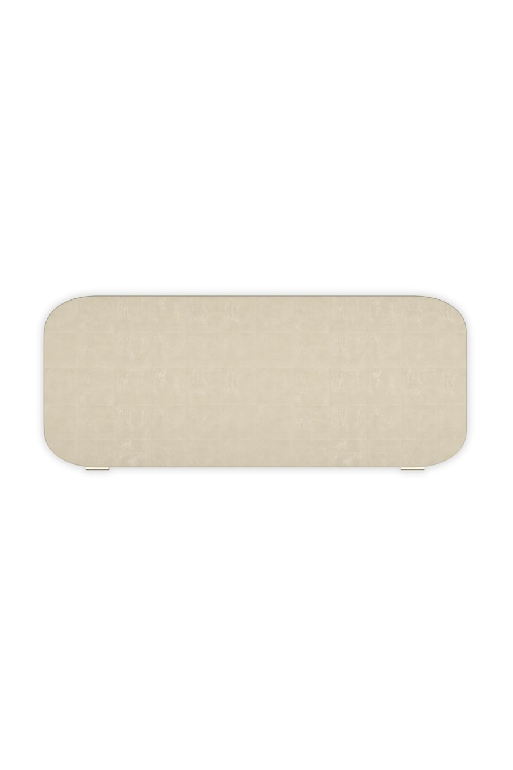 With a touch of femininity, its graceful design creates a place for everything and somewhere to keep everything in its place. Use it as a desk or dressing table—or both! Its rounded silhouette features fluted detailing and touches of Whisper of Gold. This piece is a versatile workstation, with the center drawer offering a drop-down for a keyboard while the left drawer provides a removable jewelry tray. Look in each of its two drawers and you’ll find generous interior storage. There is also a center shelf providing additional storage. Lovely acrylic legs capped with Whisper of Gold ferrules complete its fashionable appeal and make it an asset to any well-designed space.