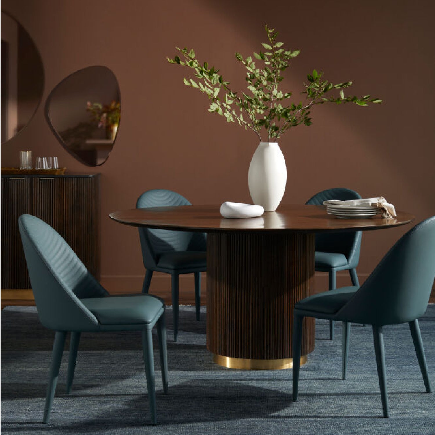 Reeded Wood Round Dining Table | Kuda Home Nems