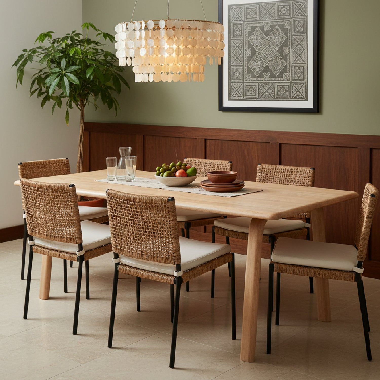 Gracefully accommodating ten guests, the Malibu dining table harmoniously captures the essence of contemporary refinement and nature's charm with its solid white oak construction. Its rich grain patterns and shades exude an understated elegance, while its rounded edged legs and tabletop create a simple, fluid, organic flow.