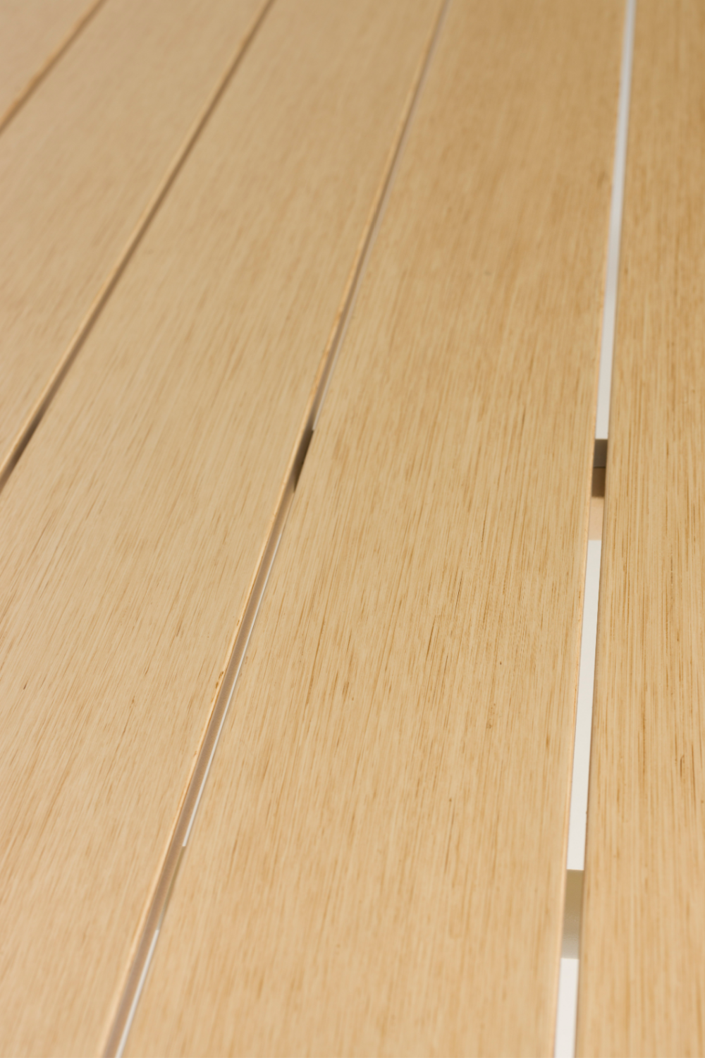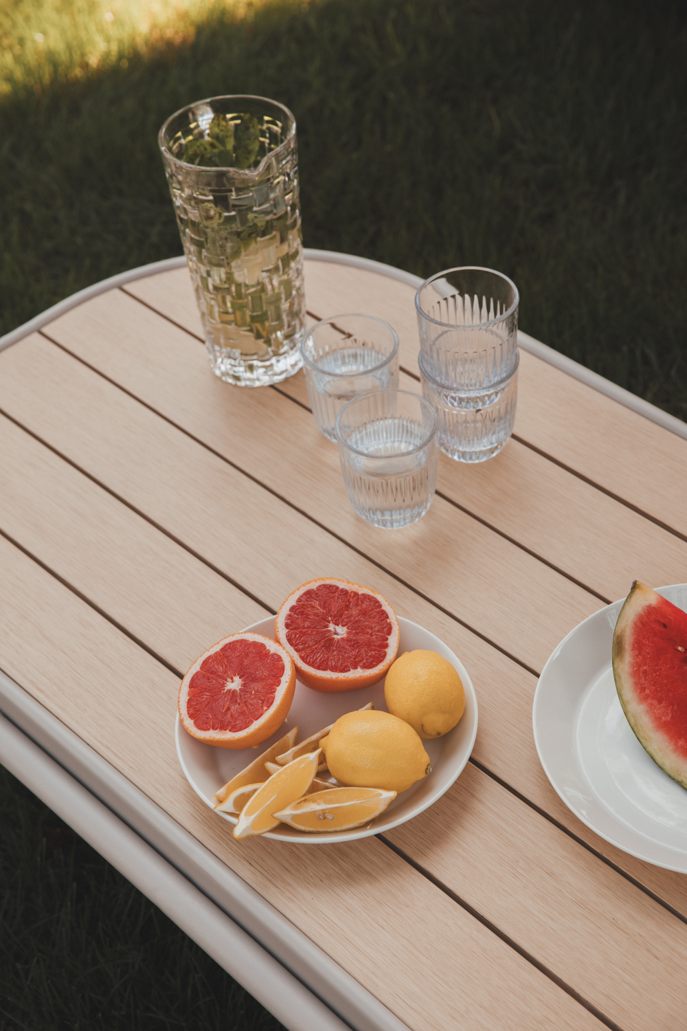 With the Vista, you effortlessly elevate the comfort of your outdoor space. The generous seat and back cushions allow you to sink in beautifully. The aluminium frame with a light powder coating provides a calm appearance. This is complemented by the light wood of the tabletop, which adds a warm and natural touch.