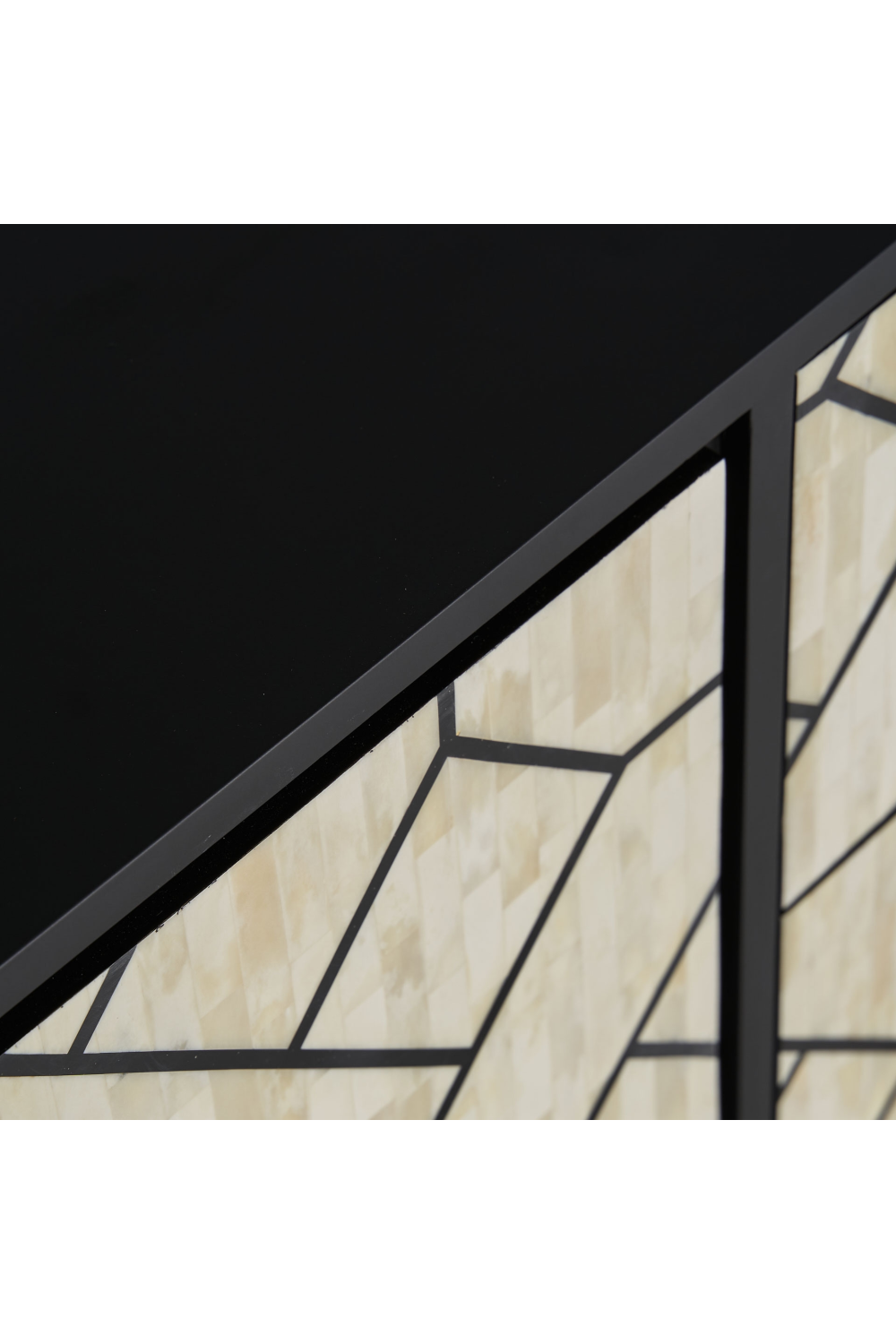 The Charmes TV cabinet by Vical Home is the epitome of tricolor elegance. This non-detachable iron TV cabinet features an exquisite bone front, in a stellar combination of black, white and gold. It is a statement of sophistication and an irresistible focal point in any home.