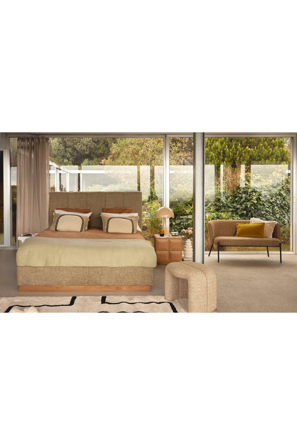 Speckled Yellow Upholstered Stool | NV Gallery Austin is backordered and will ship as soon as it is back in stock.