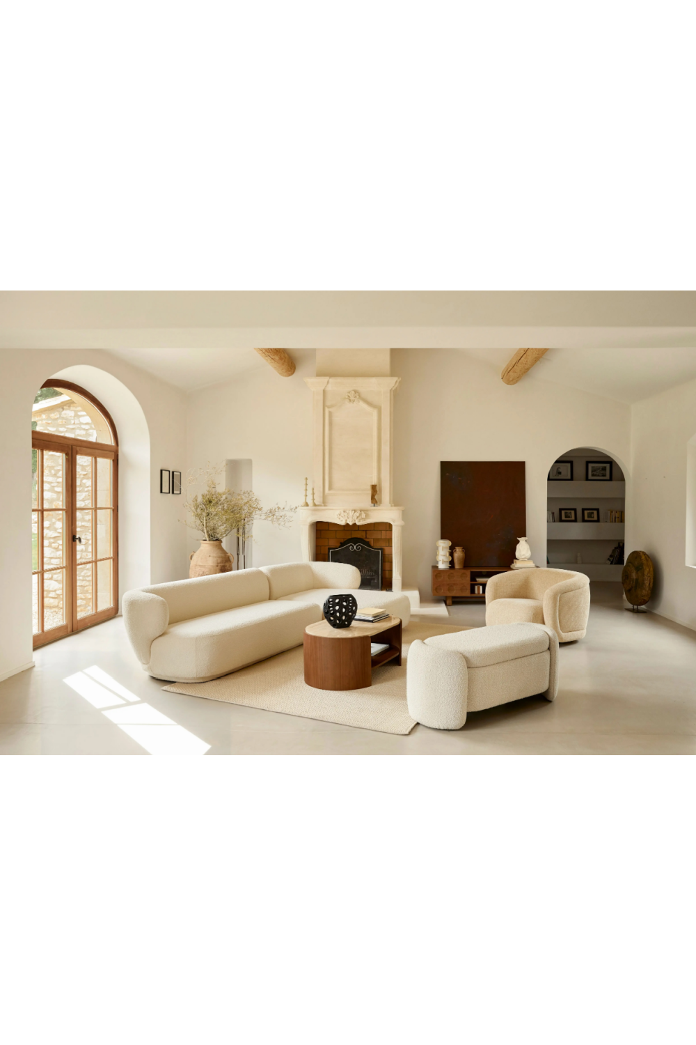 The Cooper Walnut-Stained TV Cabinet by NV Gallery takes inspiration from vintage apothecary-style furniture. It features a series of circular patterns on the front panels, each cleverly serving as a discreet handle. Crafted from natural materials, Cooper showcases fine detailing and clean lines that lend it a timeless, retro-inspired appeal.