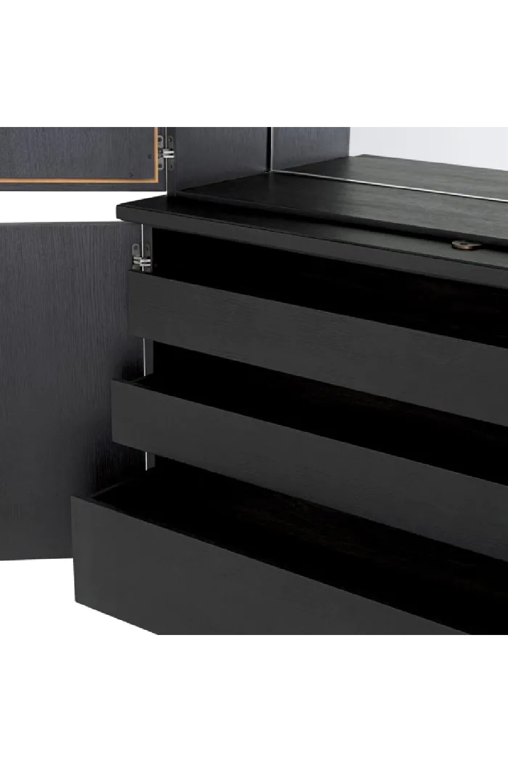 Featuring a refined black finish and antiqued mirror panels, this cabinet exudes historical allure. Its elegant design seamlessly blends vintage charm with modern sophistication, making it a timeless addition to any interior.