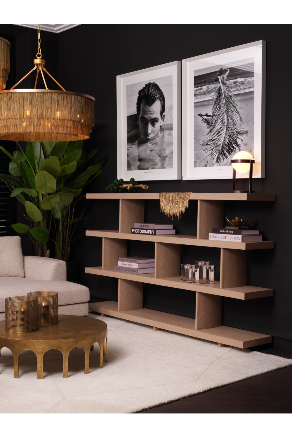 Coffee table Gardini by Eichholtz evokes Mid-Century sculptural wonder with its sharply arched edges. This piece is elegantly finished in vintage brass for an alluring effect. Make your seating area stand out with this unique and functional furniture artwork.