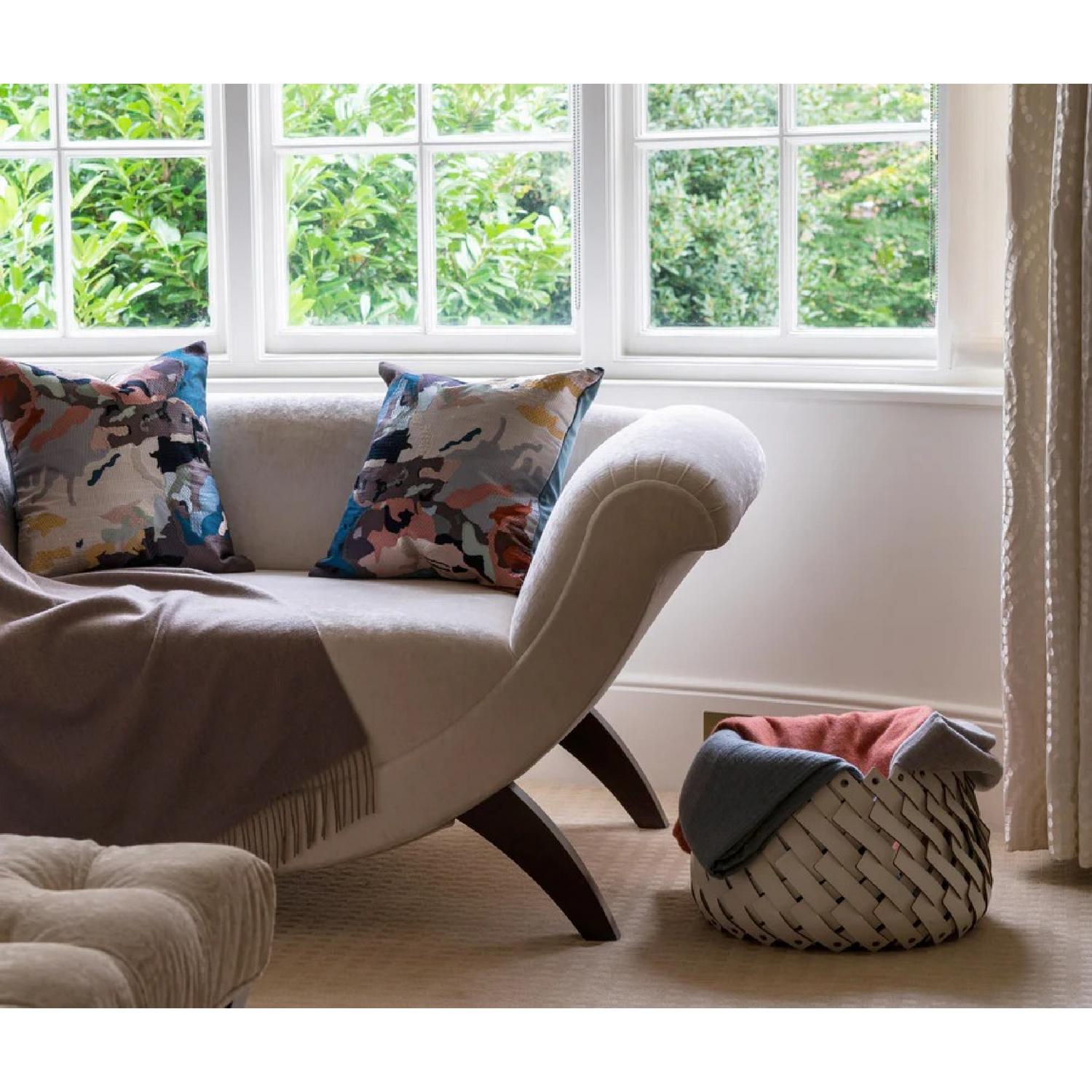 Perfect also as a blanket, shoes holder or a simple piece of décor this piece is available with or without handles and comes in different natural colors.