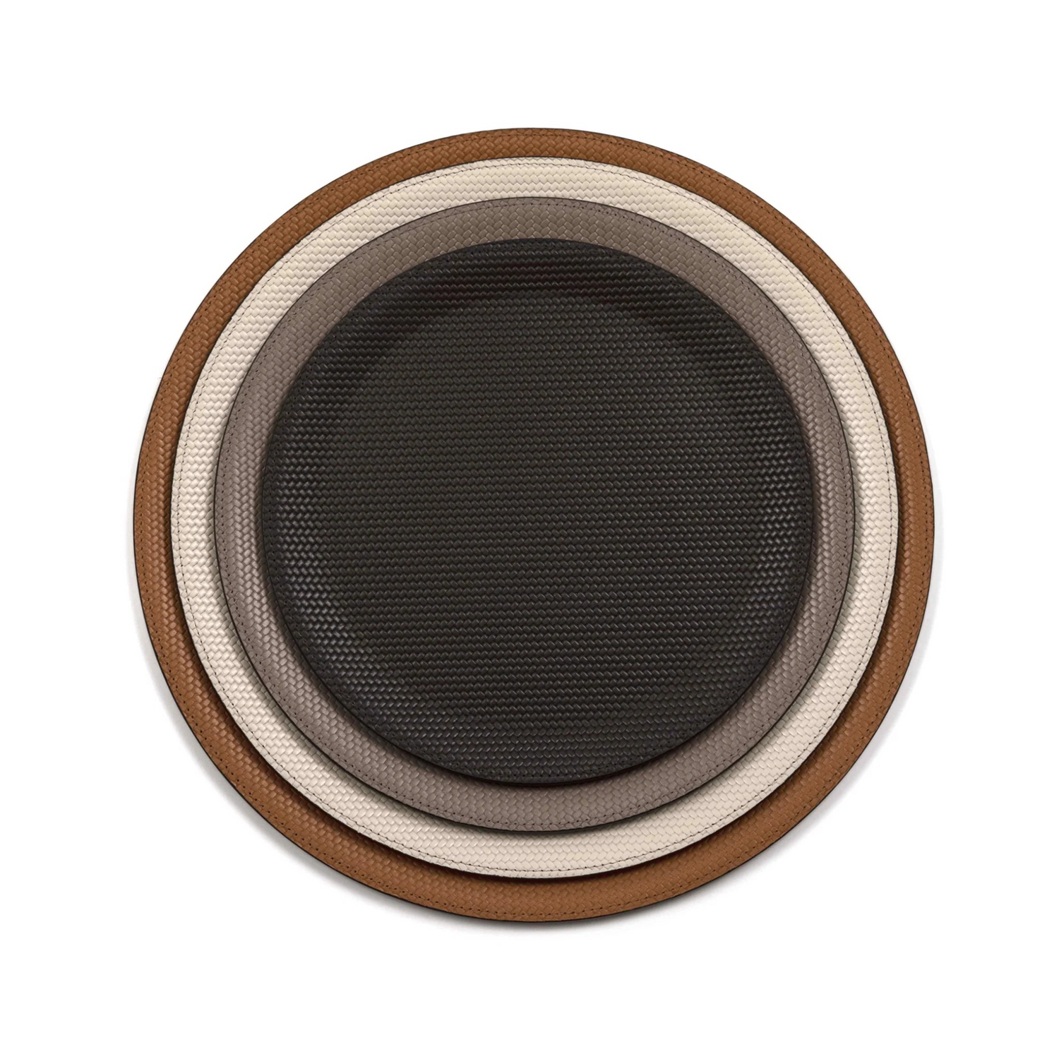 Round Calf Leather Tray | Pinetti Victor - 12"Dia / Cream - Grained Leather is backordered and will ship as soon as it is back in stock.
