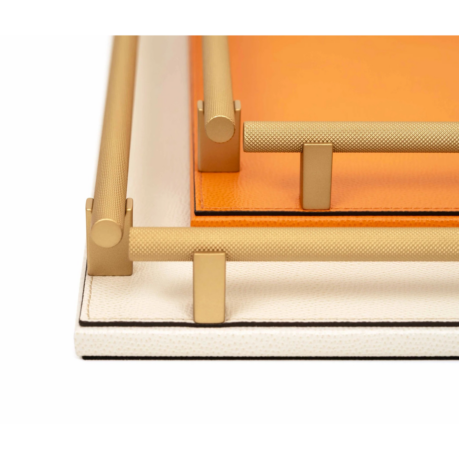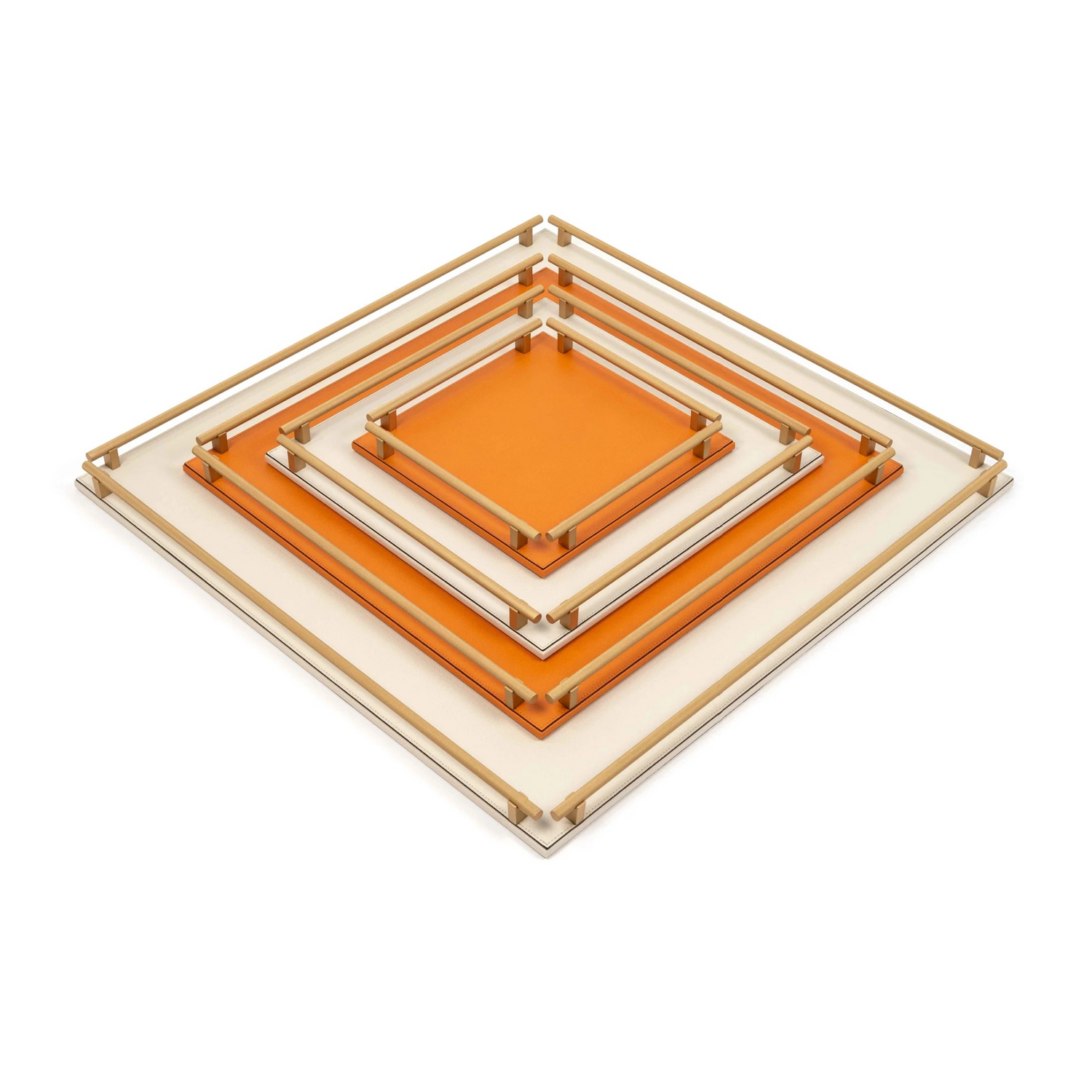 Square Leather Tray | Pinetti Robert - 11"W x 11"D / Burnished Brass / Cream - Grained Leather is backordered and will ship as soon as it is back in stock.