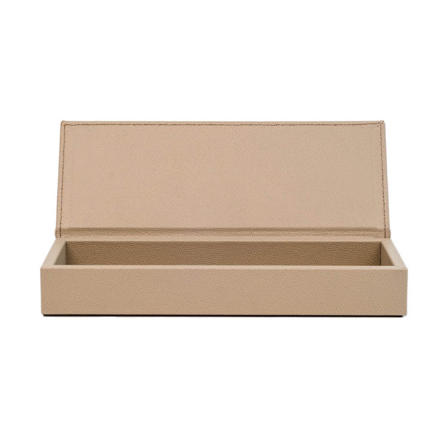 Crafted from elegant calf leather with subtle tone-on-tone stitching, this small rectangular box offers a refined solution to keep your desk organized. Its clean lines and sophisticated design make it a perfect complement to your workspace, blending functionality with style. Pair it with our curated office accessories to create a cohesive and polished environment.