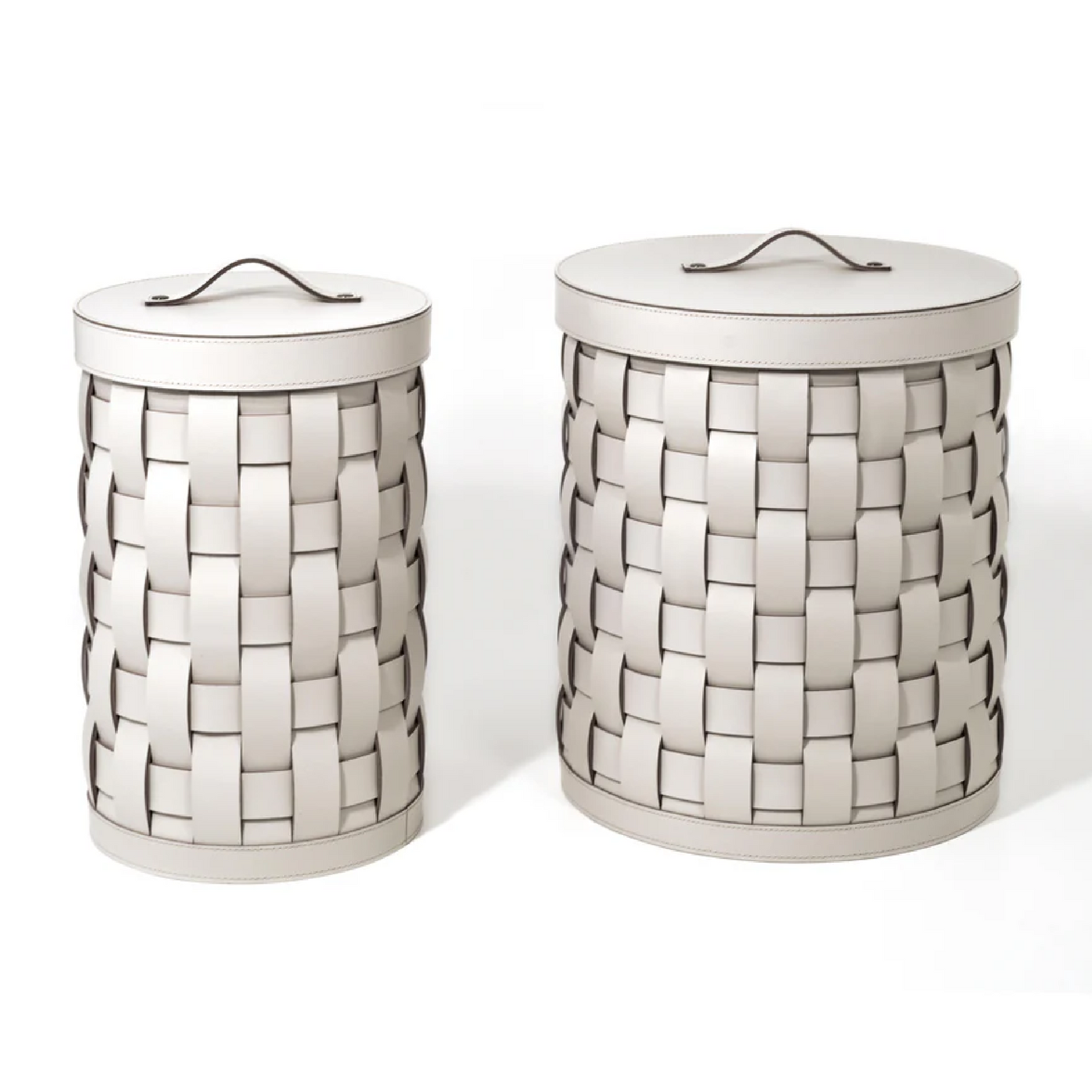 Woven Leather Lidded Paper Bin | Pinetti Demetra