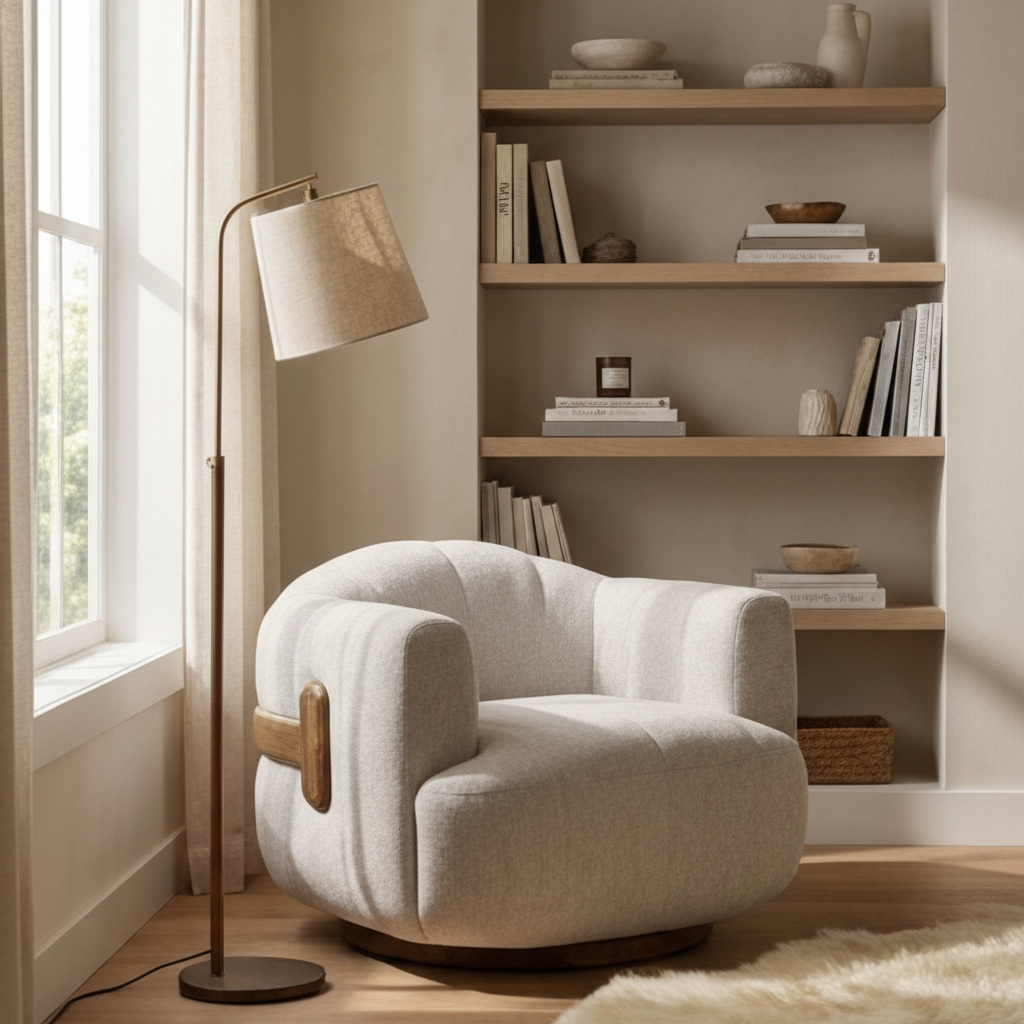 - Neutral versatility: Cream upholstery pairs beautifully with warm woods, marble, brass, and modern decor.