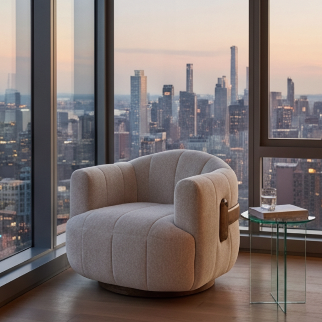 Cream Channeled Swivel Lounge Chair | Splendido Tadeo