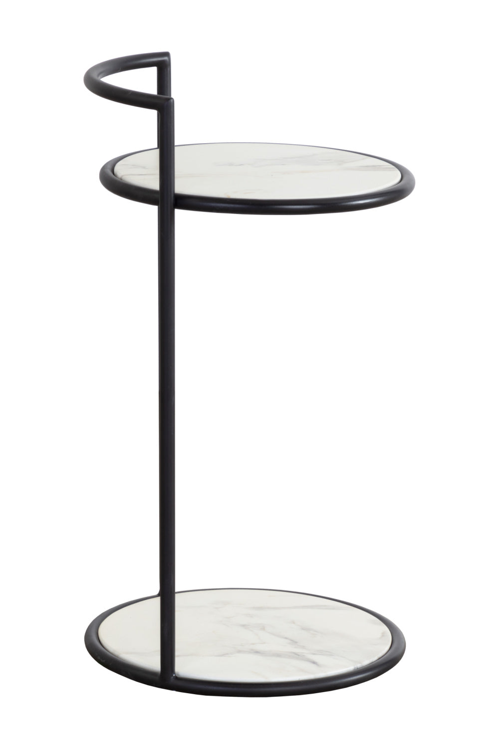 The curved minimalist design of the Parga End Table makes it a versatile accent for any space. Beautiful shelves with a travertine look elevate the overall look of the piece.