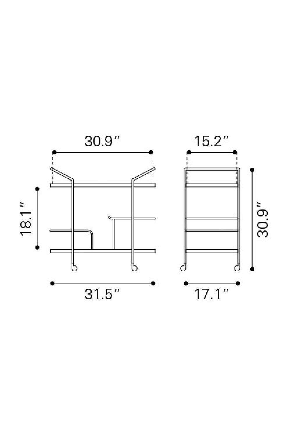 Introducing the Antalya Bar Cart, a stunning and modern piece of furniture that will add a touch of elegance and functionality to any living room or dining area. The bar cart features a deco-inspired design with a combination of brown lacquered acacia wood and brushed steel.