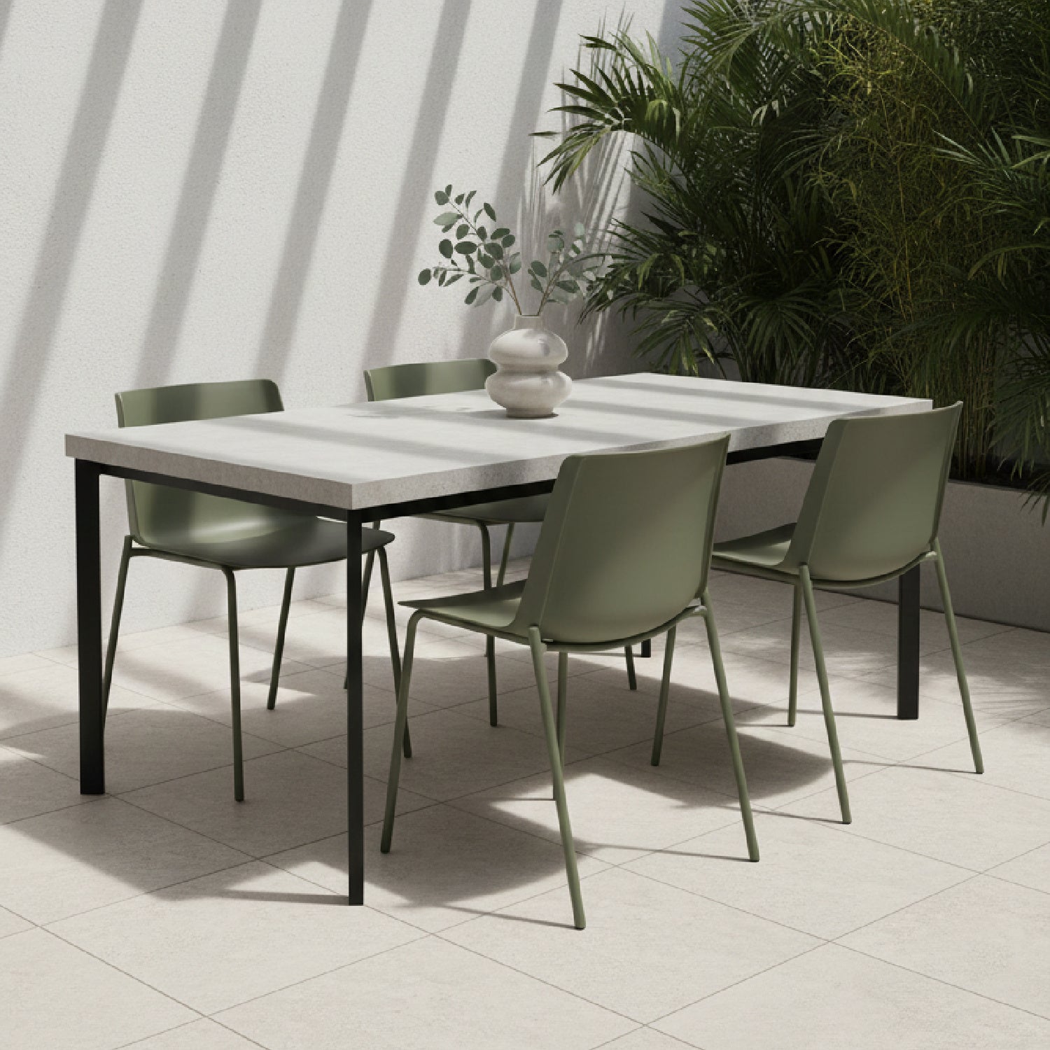 Simplicity matched with durability, the perfect ingredients for outdoor dining chairs. The Silla’s understated design and powdered coated steel legs are perfect for patio and al fresco dining. Easy to clean and great in almost any weather, these versatile chairs look just as good for backyard BBQs as sunset soirees.