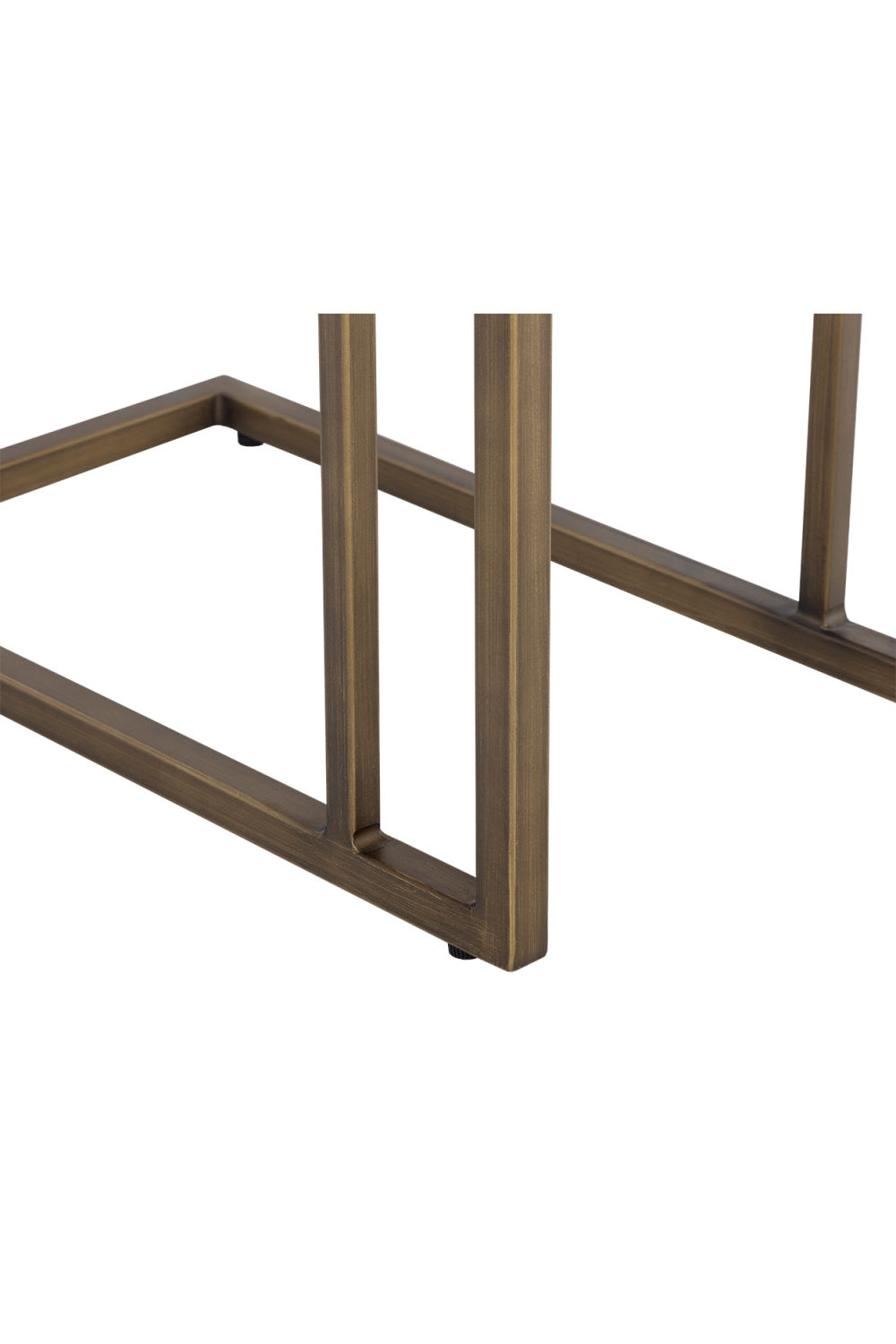 This minimalist c-shaped end table is a stylish and practical accent piece for small spaces. Features a concrete top with an antique brass steel frame that is perfect for pairing with a sofa or occasional chair.