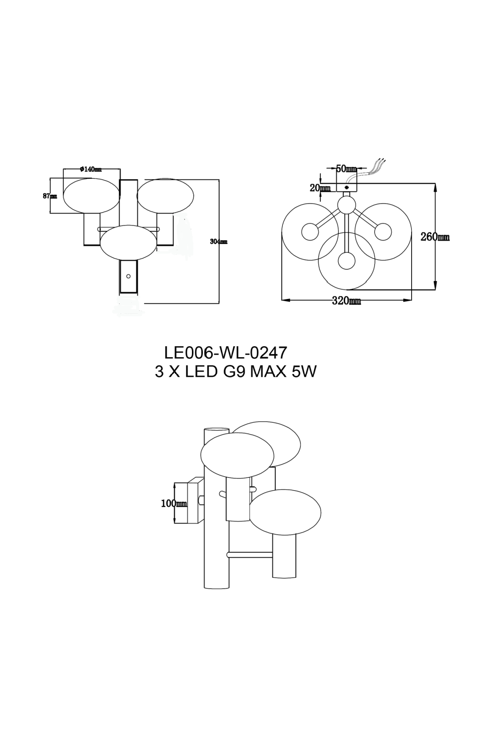 - 3 Bulbs (not incl.): Max. 60W - LED G9