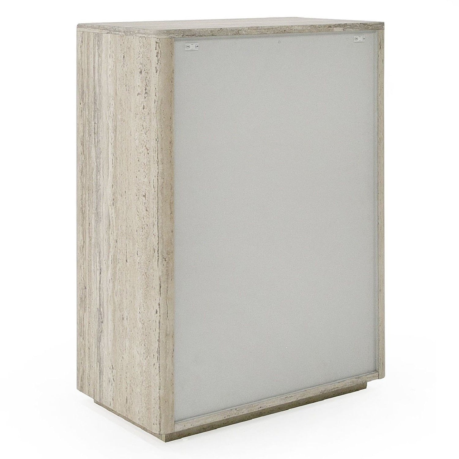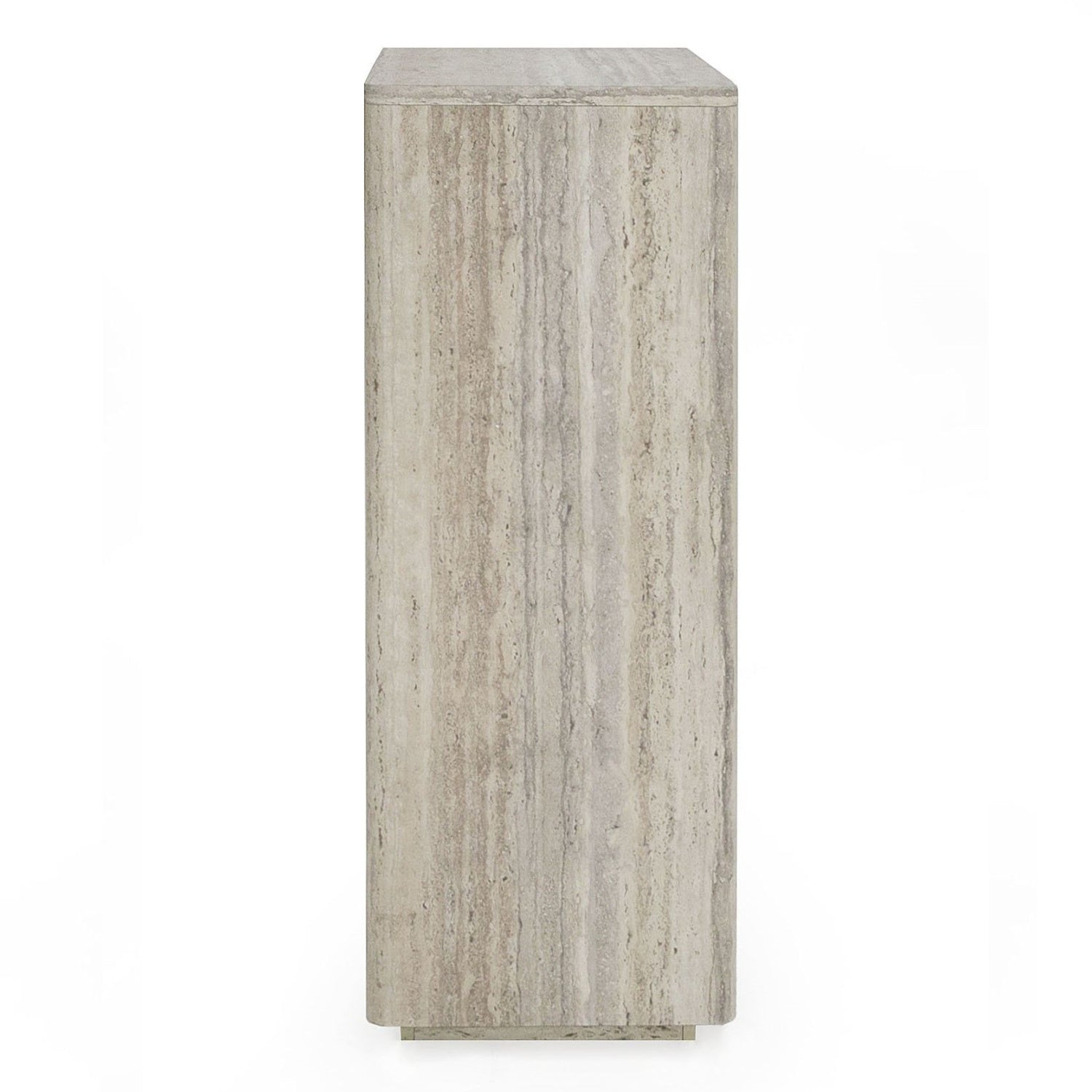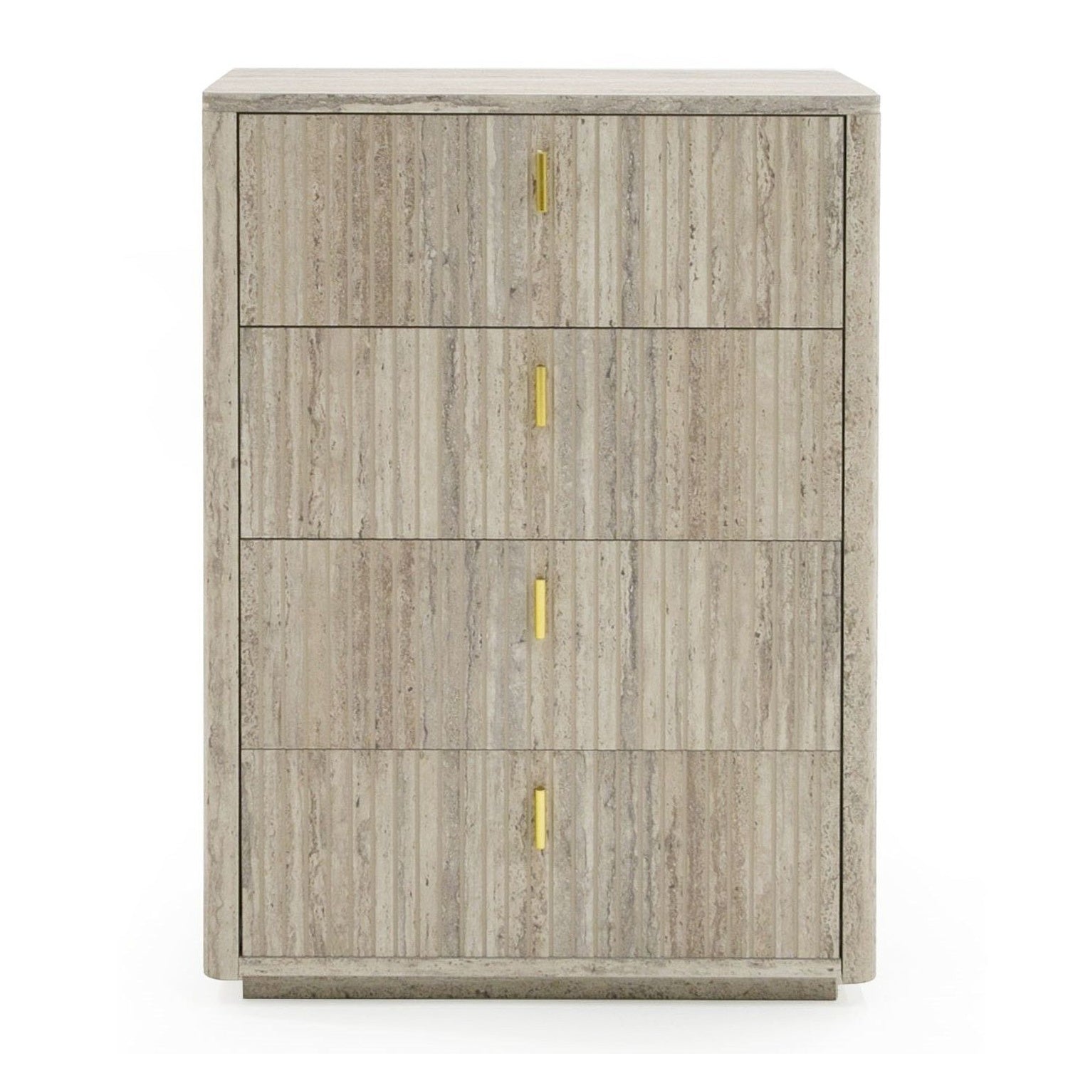 The Roma Chest comes from our new Roma Bedroom collection! This vertical chest features four drawers with soft/self closing drawers and elegant golden metal handles. The surface of the piece is a faux travertine laminate finish all over. The Roma Chest combines excellent quality material and suburb design that makes it a stunner in any bedroom space. The Roma collection also includes a dresser, mirror and nightstand as well as matching living, dining and office furniture!