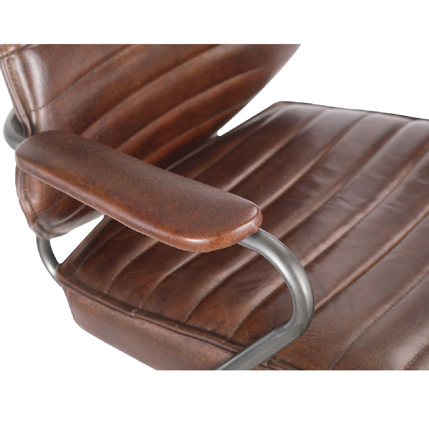 Upgrading your home office? Workspace is workflow, and enhancing your daily productivity should start with comfort - without compromising style. The Executive is a high-performance task chair that encourages natural movements with curves, contours, padded armrests, and fully adjustable features. Luxuriously channeled top-grain leather leads to a sturdy iron base equipped with easy-glide wheels. Flexible design for any office decor and available in three colors, this may just be the last office chair you'll ever have to buy.