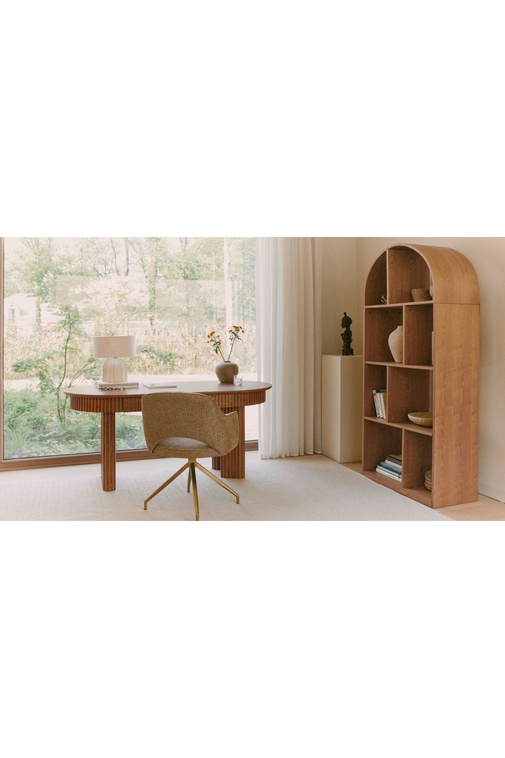 This Luthor Openwork Swivel Office Chair by NV Gallery offers generous comfort, featuring a well-padded, stable seat supported by a swivel base in gold stainless steel. Its rounded, openwork backrest brings a touch of vintage flair, contouring naturally to the back, and is complemented by two armrests for added relaxation.