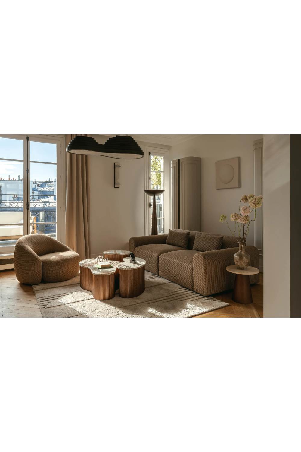 Inspired by the sea’s gentle motion, the Isleta Red Marble Coffee Table by NV Gallery features soft, wavy lines that bring a sense of calm and fluidity to any space. Used alone, the table makes a strong statement, while grouped, they form a harmonious archipelago of organic shapes. The walnut-stained ash wood base contrasts beautifully with the Kanta marble top, whose subtle veining adds both elegance and durability. This Isleta table boasts a perfect balance of natural warmth and sophistication.