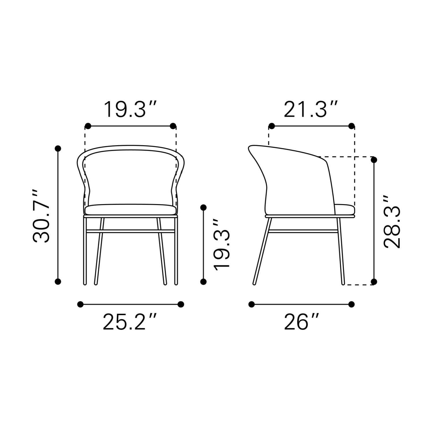 - Seat Dimensions: W19 x D22 x H19 in | W48 x D56 x H48 cm